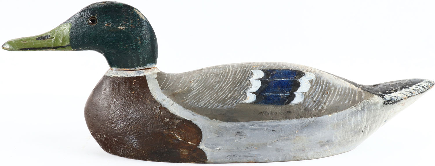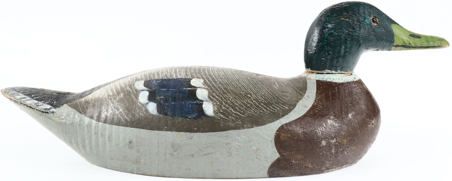 Mallard Drake by Benz Decoy Co, glass eyes, solid wood, original paint has been touched up, structurally excellent, circa 1930's. Grade: Excellent - Value: 50 to 150