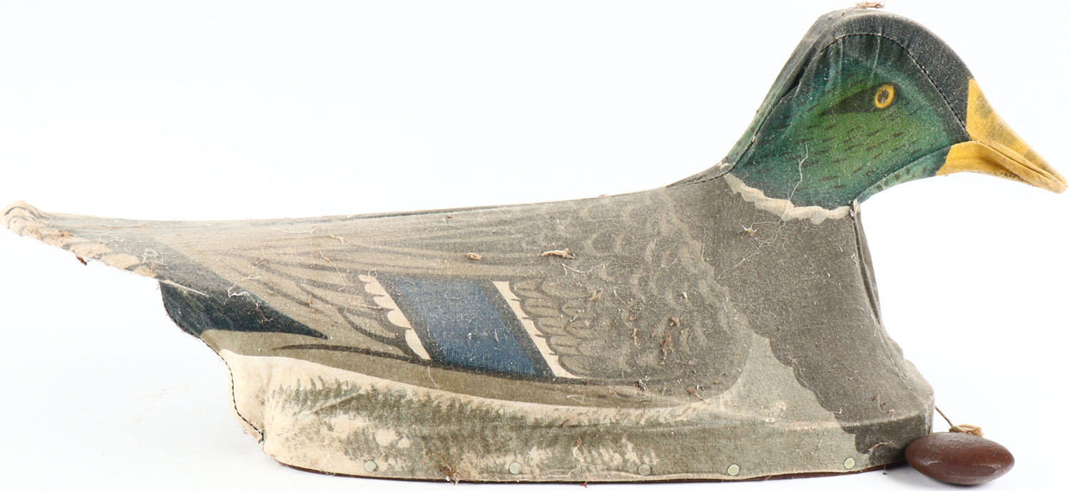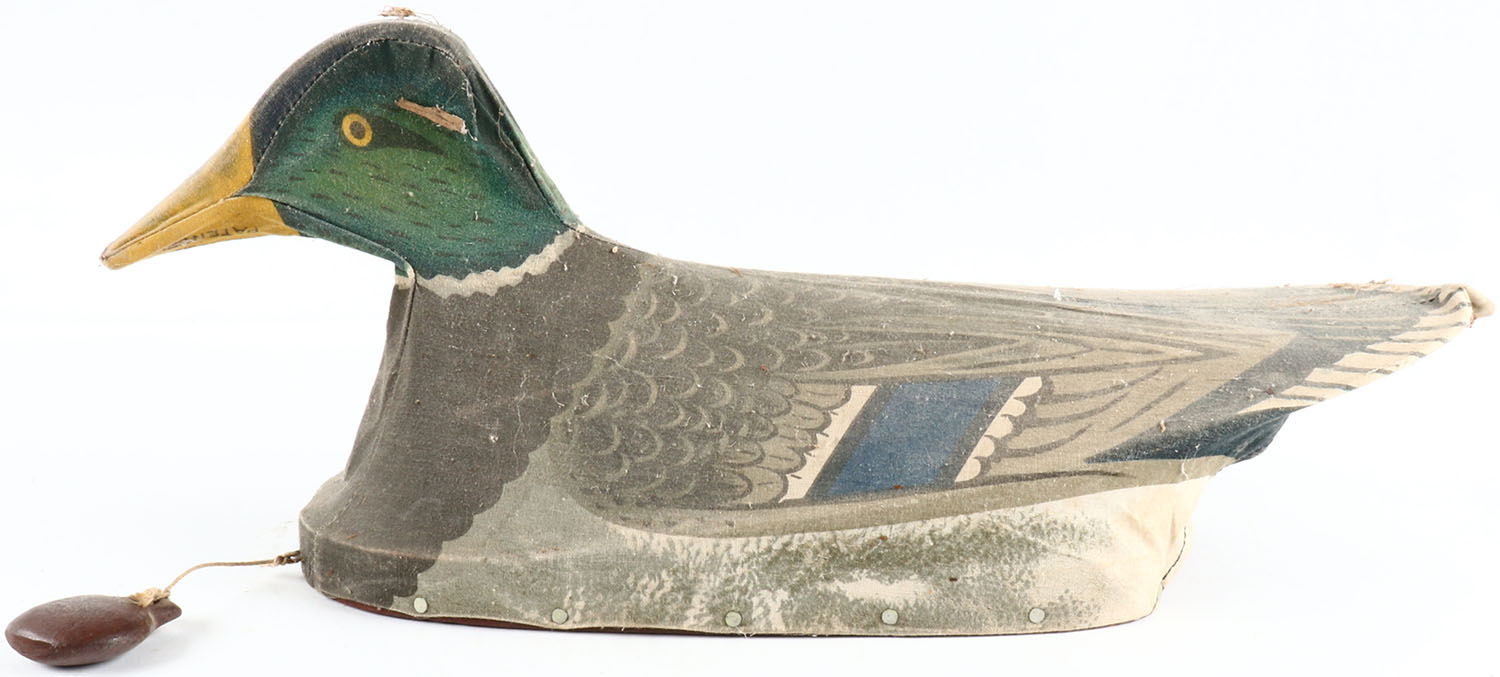 Mallard Drake by Acme?, painted eyes, canvas folding decoy, original paint, structurally excellent. Grade: Excellent ++ - Value: 10 to 30