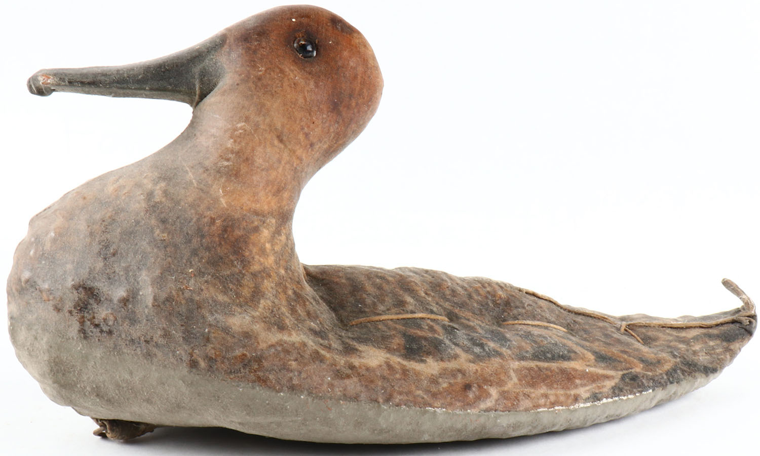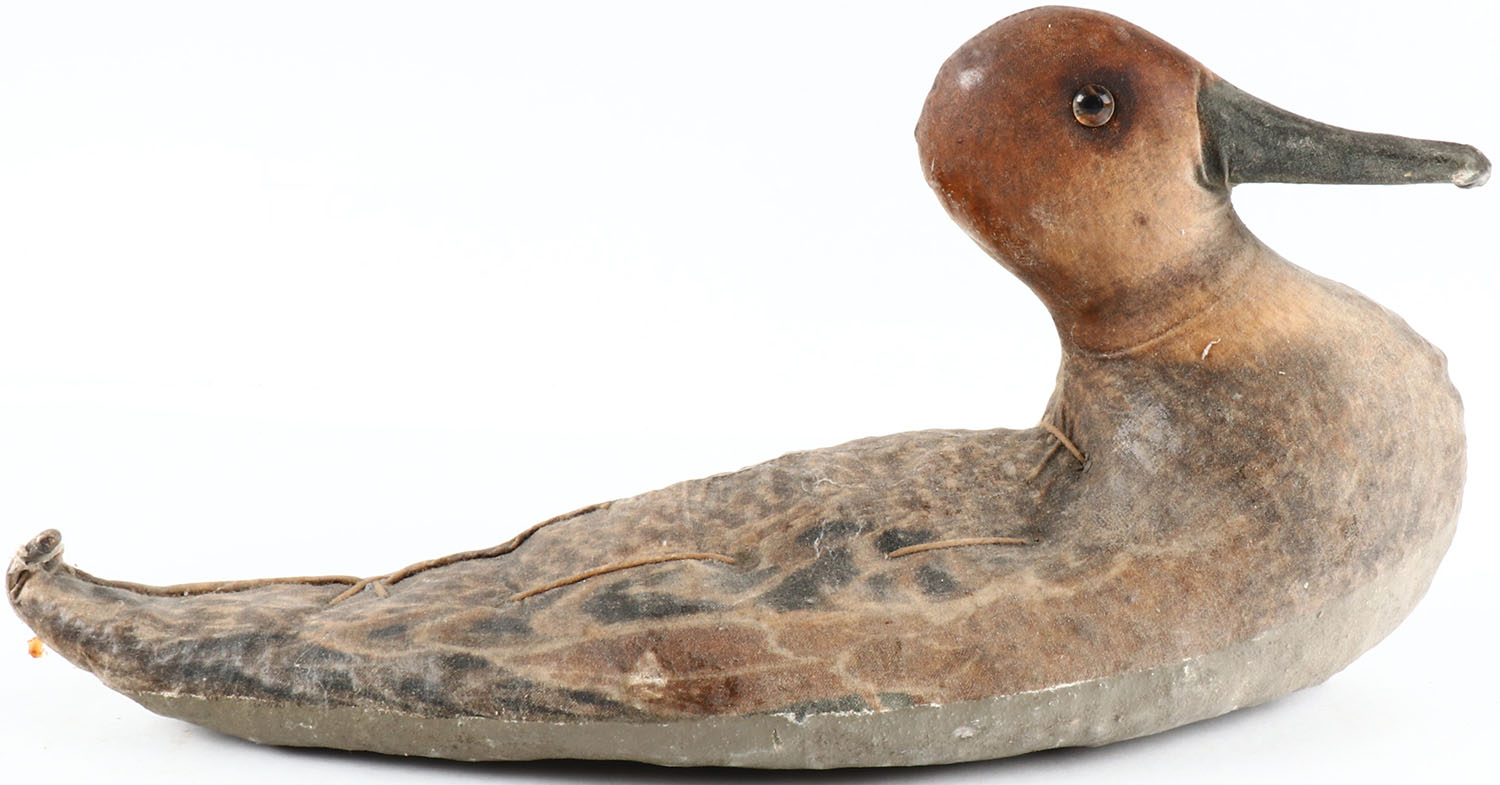 Pintail Hen by Armstrong Decoy Co., glass eyes, canvas over cork, original paint, structurally excellent. Grade: Excellent + - Value: 20 to 50