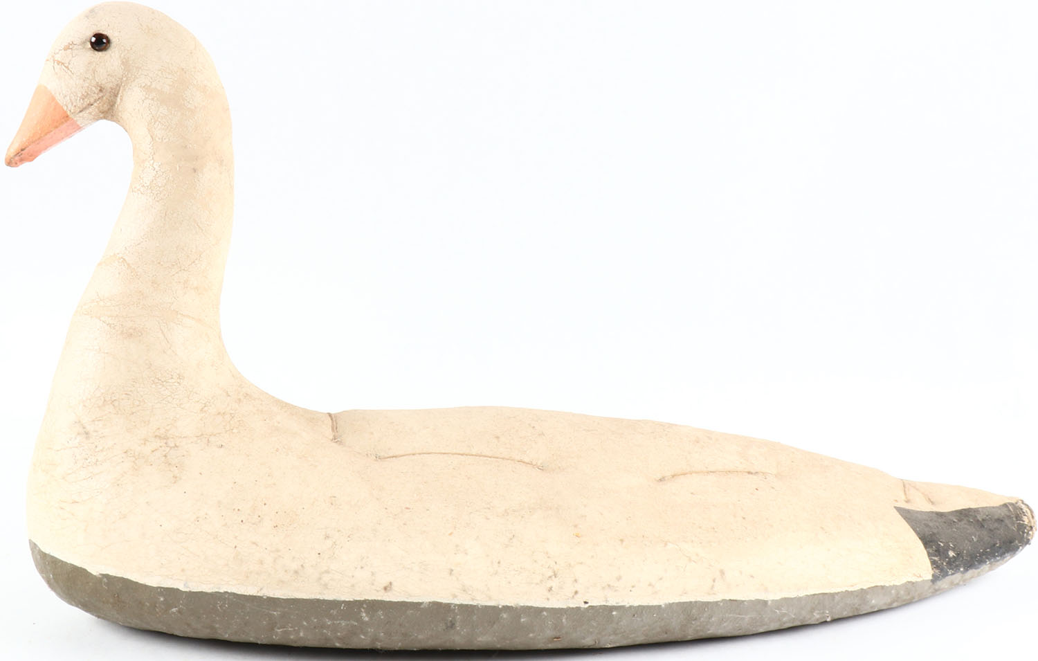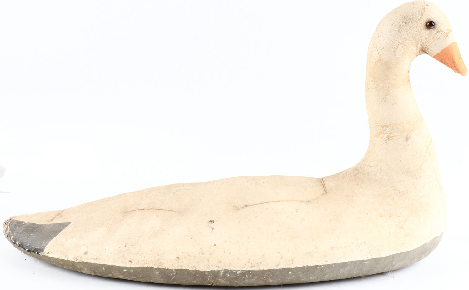 Snow Goose by Armstrong Decoy Co.?, glass eyes, canvas over cork, original paint, structurally excellent. Grade: Excellent + - Value: 20 to 400