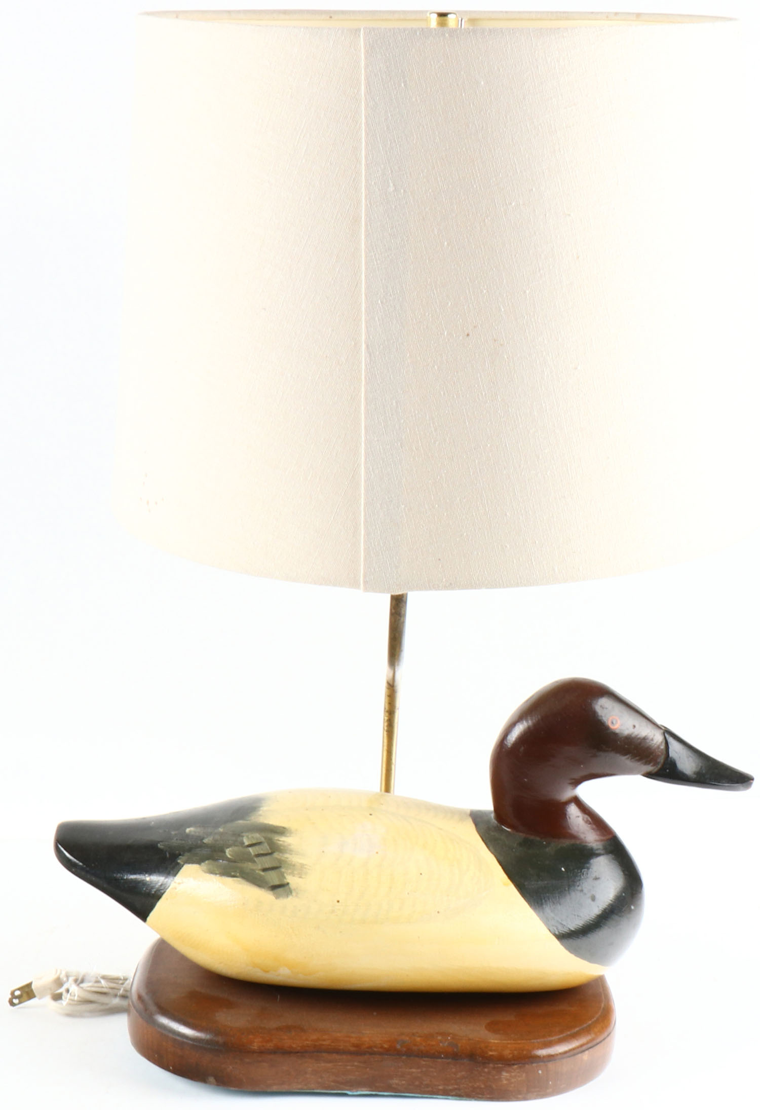 Canvasback Drake by unknown maker, Havre de Grace, MD, solid wood, painted eyes, with lamp and wood base. Grade: Excellent - Value: 10 to 100