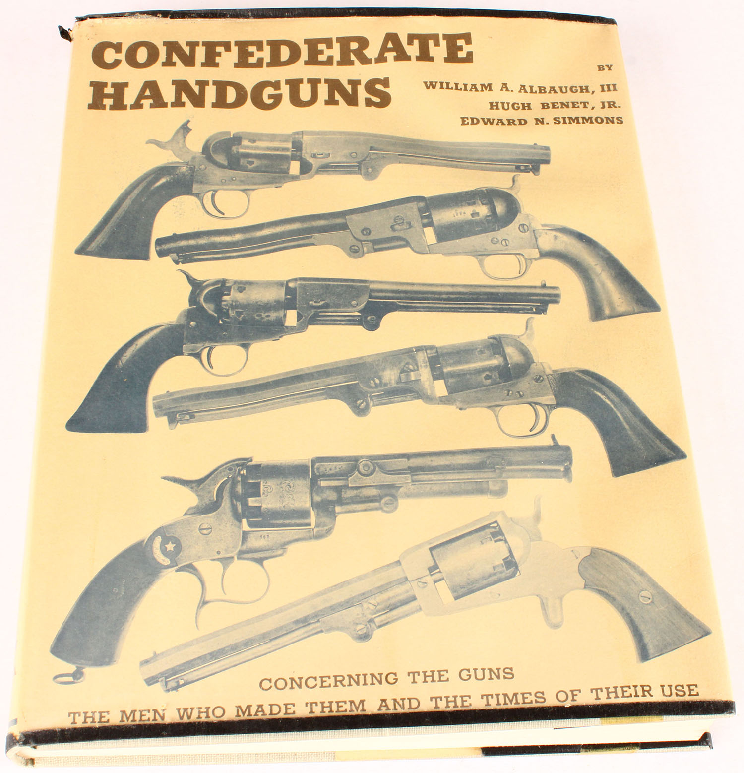 Confederate Handguns by William A. Albaugh, III Hugh Benet, JR. Edward N. Simmons, 8 1/2'' x 11''. 250 pages, pages clean, binding tight, hardcover excellent, dustjacket very good, b/w images. Value: $365 Grade: Excellent - Value: 140 to 350