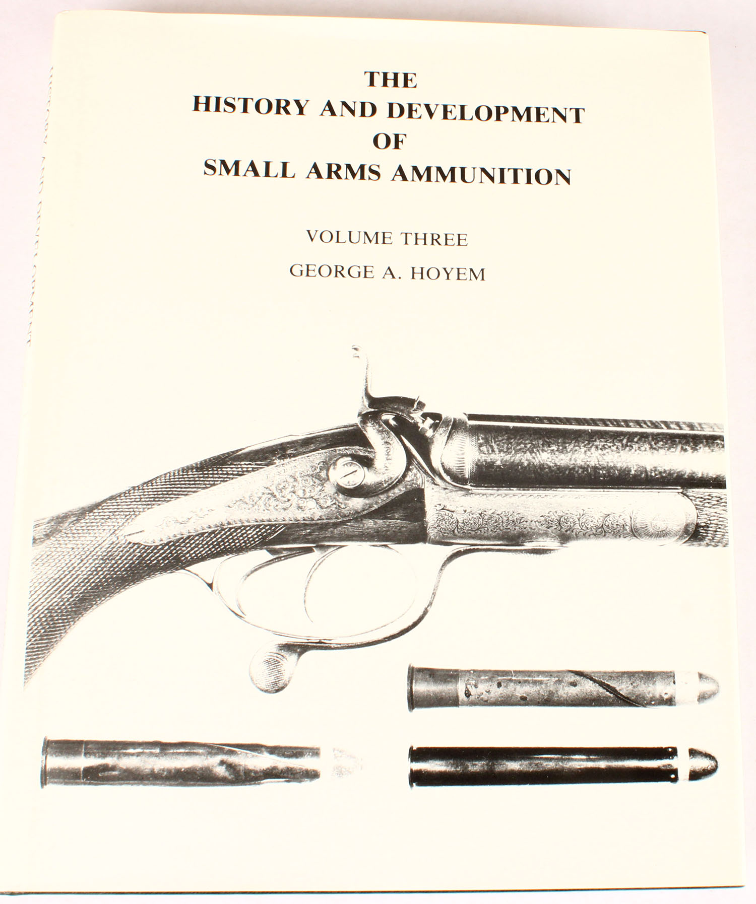 The History and Development of Small Arms Ammunition Volume Three by George A. Hoyem 1985, SIGNED BY AUTHOR, 8 1/2'' x 11''. 220 pages, pages clean, binding tight, hardcover and dustjacket mint, b/w images. Value: $175 Grade: MINT - Value: 20 to 175
