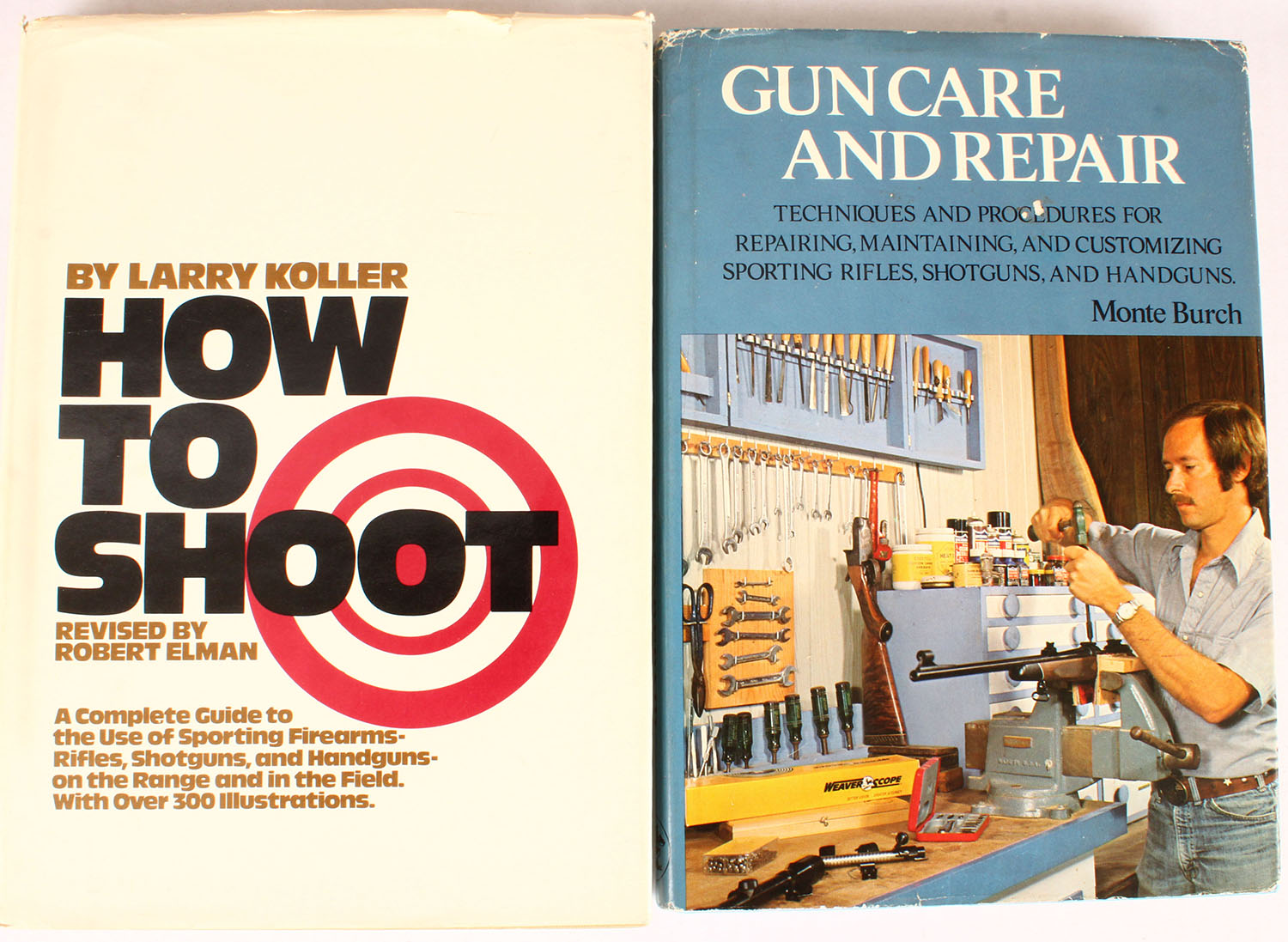 Lot of 2 (1) How To Shoot Revised by Robert Elman, 7 1/2'' x 10 1/2''. 242 pages. (1) Gun Care and Repair by Monte Burch 1978, 7'' x 10''. 191 pages. Grade: Excellent - Value: 2 to 50