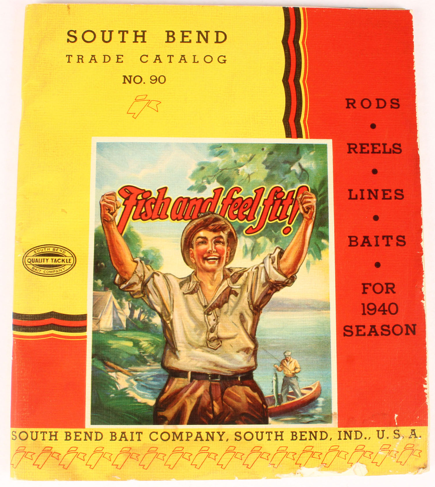 South Bend Trade Catalog No. 90, Rods, Reels, Lines, Baits For 1940 Season, 8 1/2'' x 10''. 100 pages, pages clean, binding tight, papercover very good with some tearing, colored and b/w images. Value: $80 Grade: Very Good ++ - Value: 4 to 80