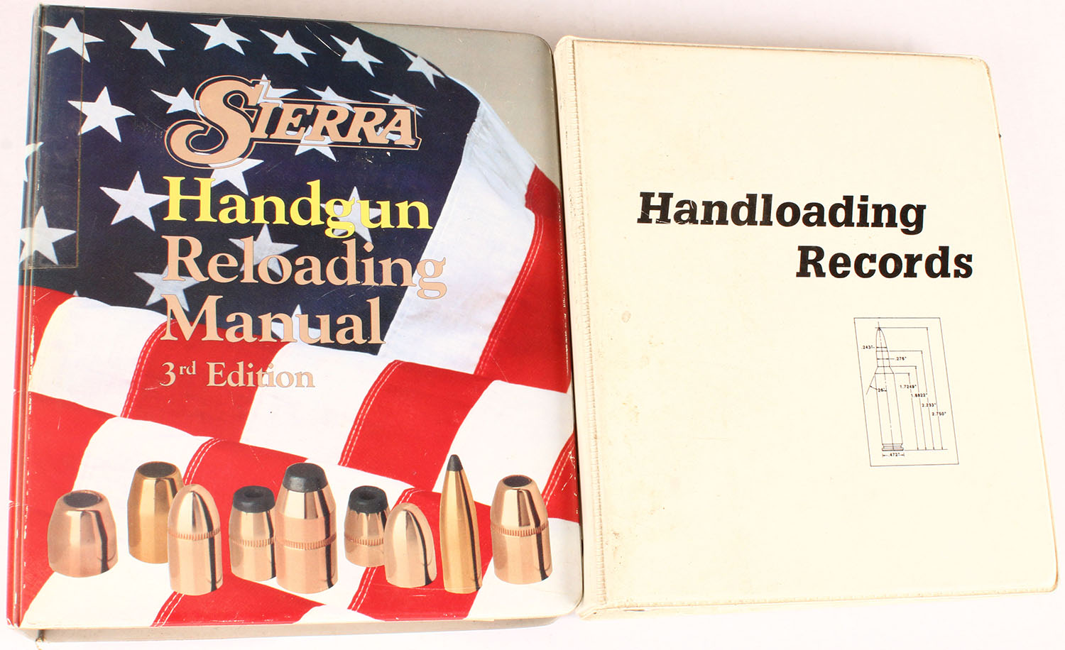 Lot of 2 (1) Sierra Handgun Reloading Manual in a 3 ring binder (1) Handloading Records in a 3 ring binder. Grade: Very Good ++ - Value: 2 to 50