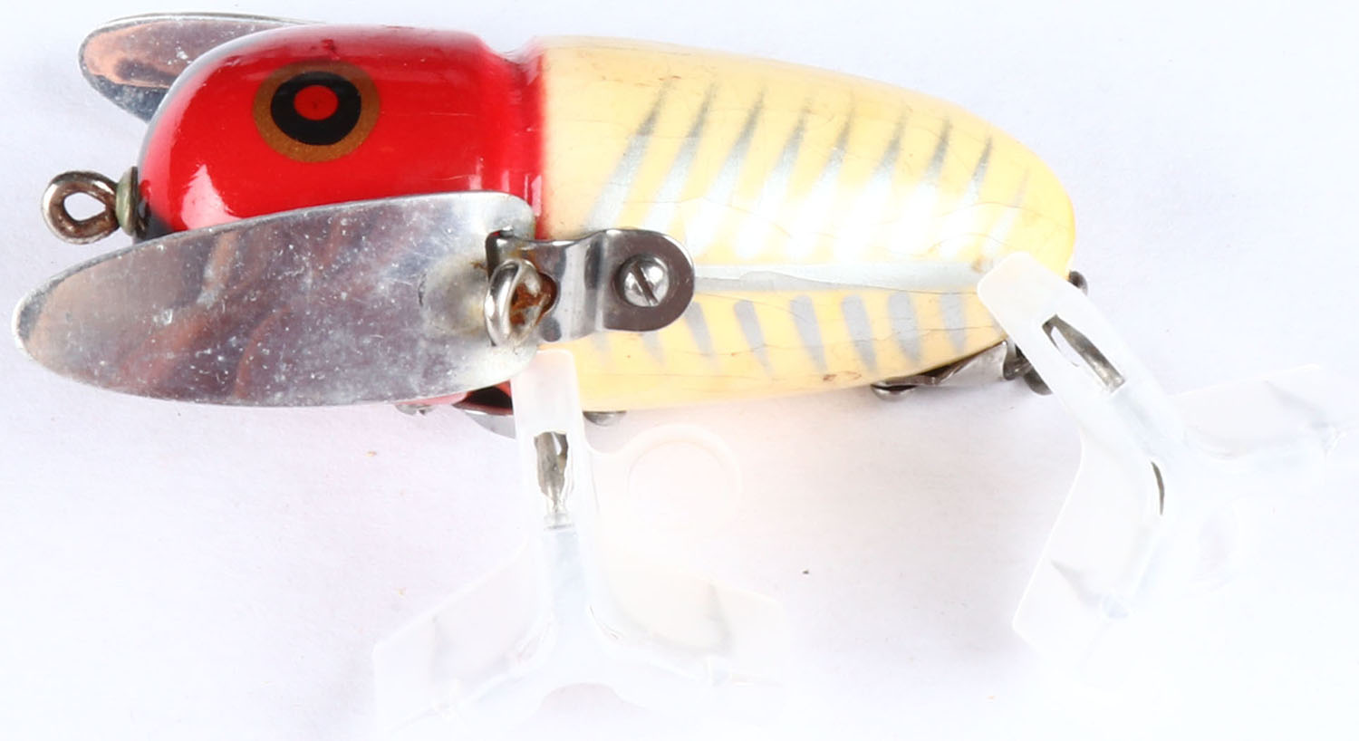 Heddon Crazy Crawler, wood lure, PE, red & white, 2 hooks, surface rig, 2 1/2''. Grade: Excellent - Value: 20 to 60