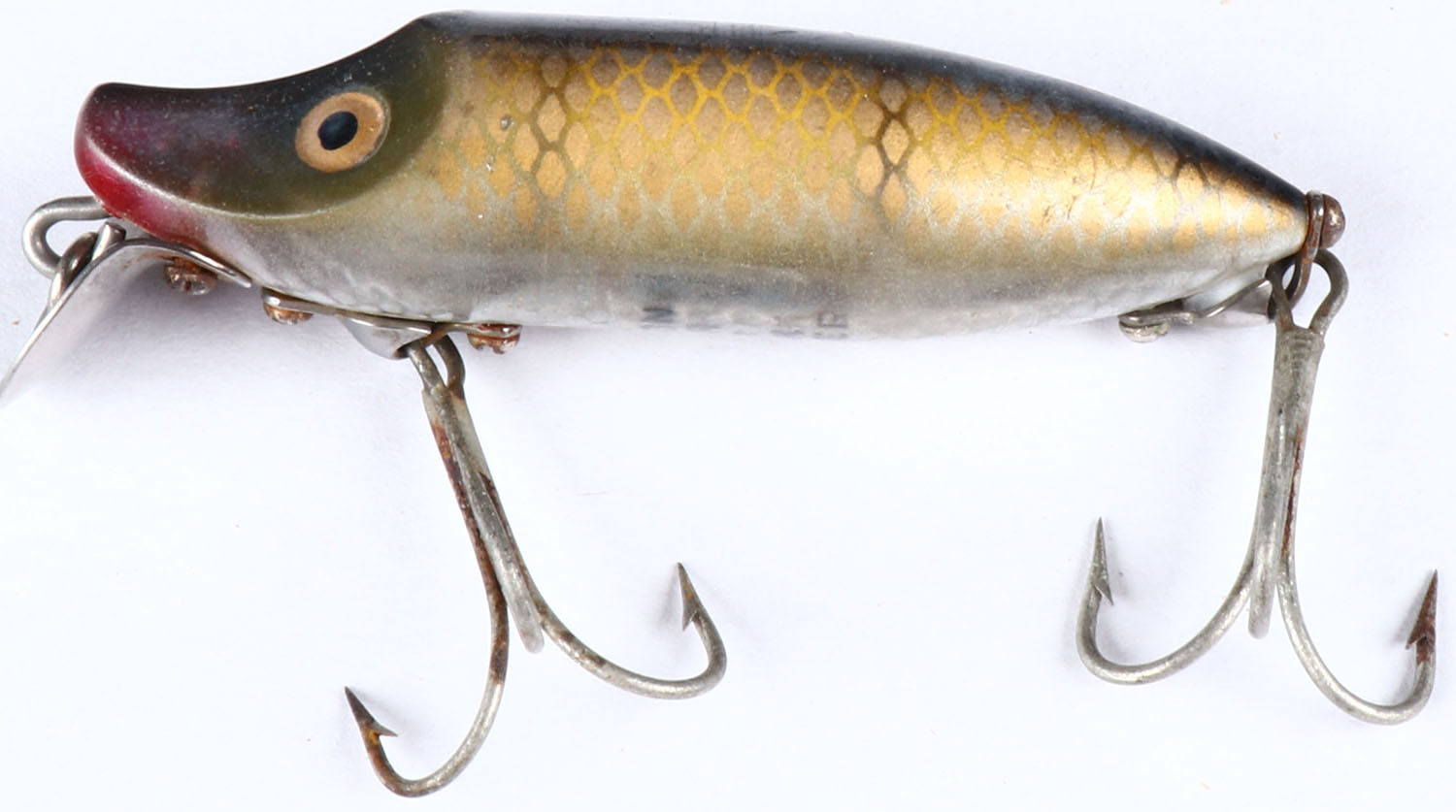 Heddon River Runt Spook Floater, PE, gold scale, plastic 2 hooks. Grade: Excellent - Value: 10 to 30