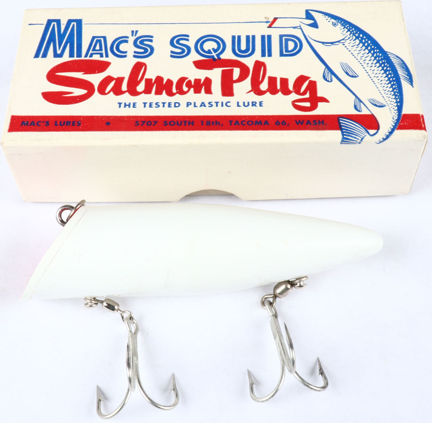 | Mac's Squid Salmon Plug in original box, 4''. Grade: Excellen...