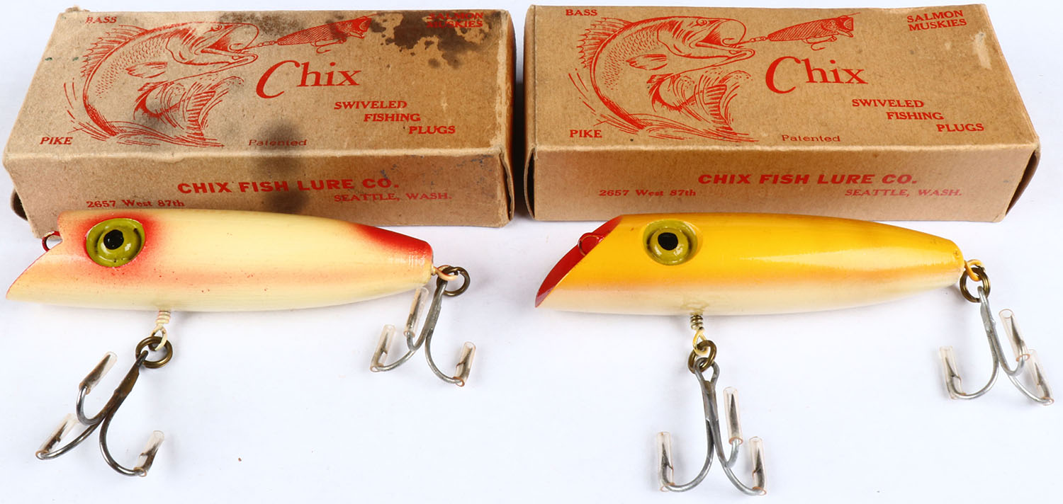 Lot of 2 Chix Salmon Plug in orginal box, 4 1/2''. Grade: Excellent - Value: 20 to 80