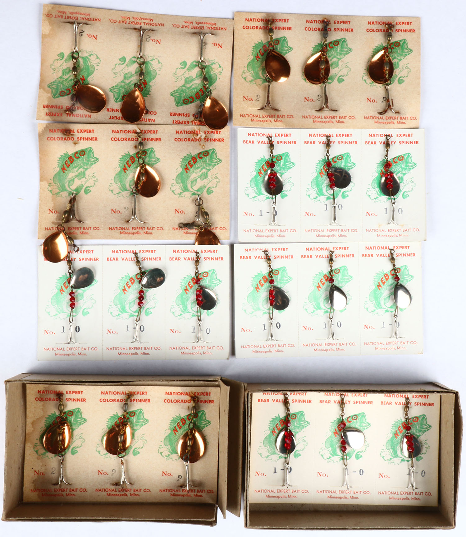 Lot of 2 National Expert Bait Co. Colorado spinners on cards 9 spoons total & Bear Valley Spinners 9 spoons total. Grade: Excellent - Value: 20 to 100