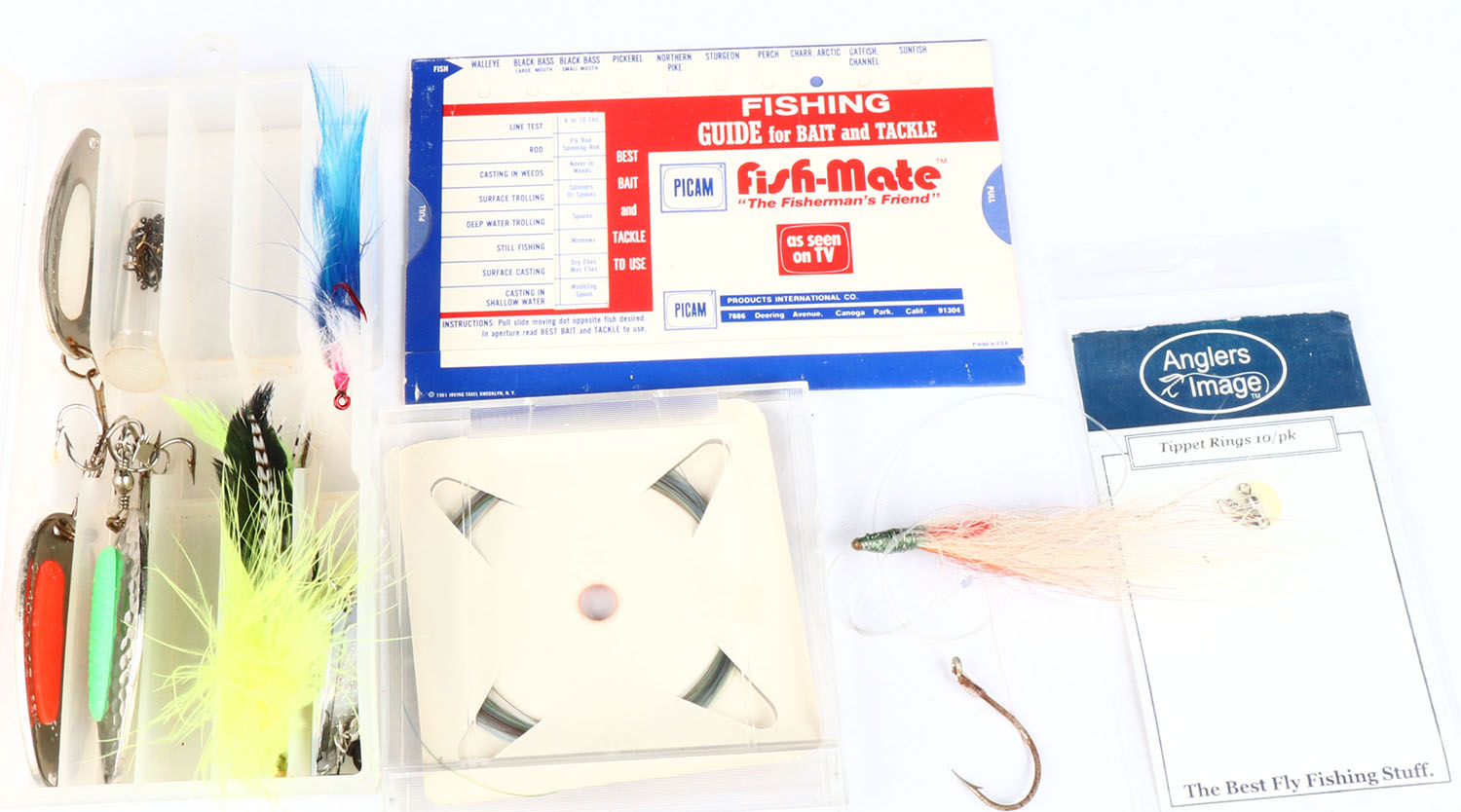 | Lot of fishing spoons, line & flies. Grade: Excellent - Valu...