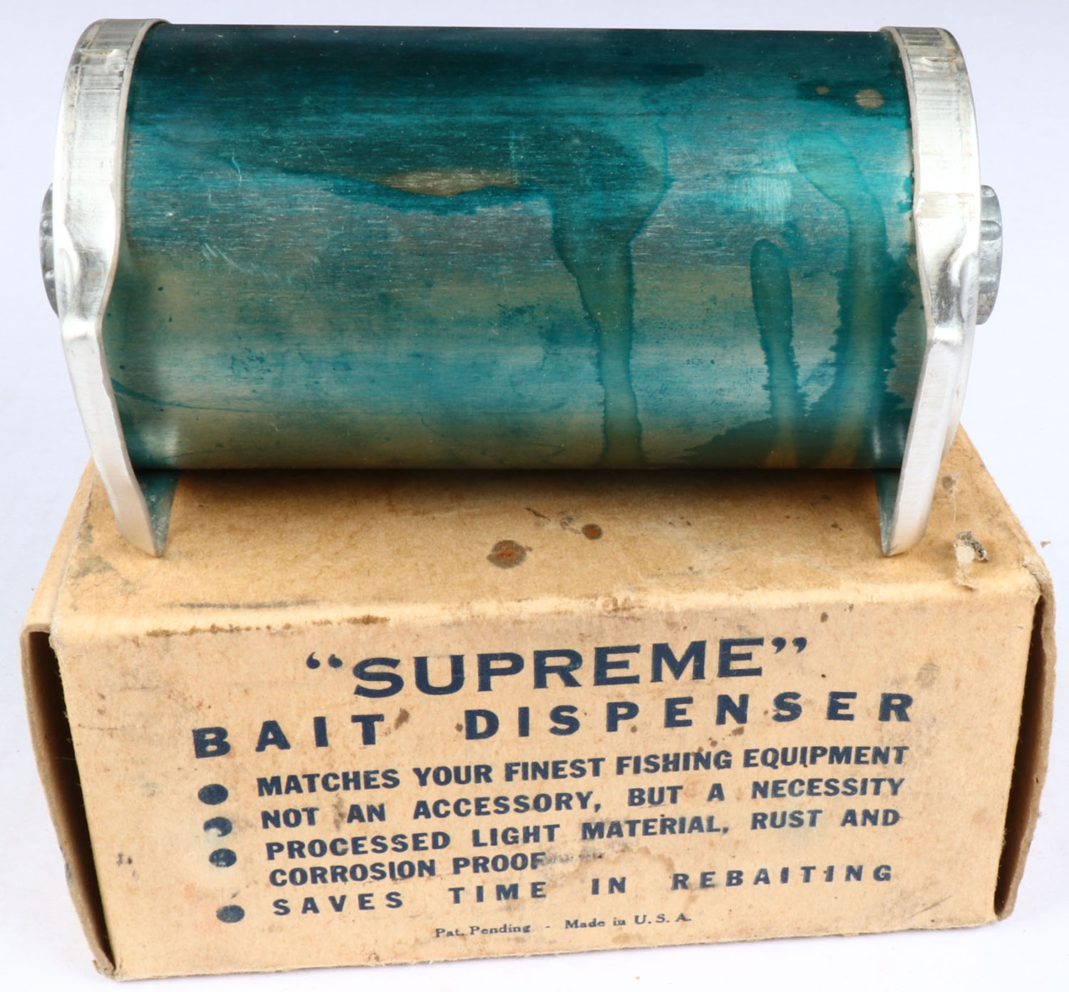 A&K MFG Co. Supreme Bait Dispenser in original box, has belt loops. Grade: Excellent - Value: 6 to 30