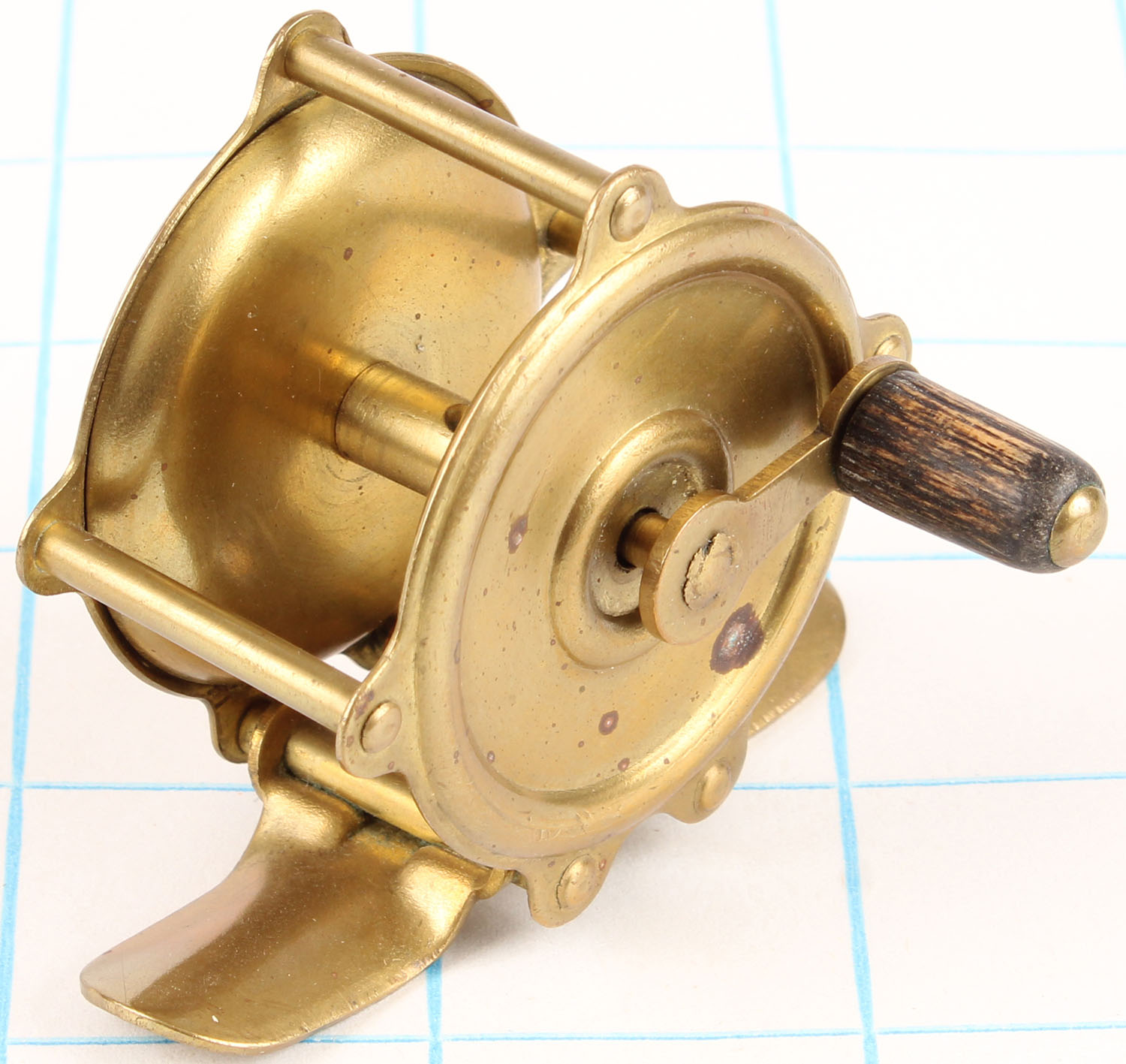 | Unmarked small brass fly reel, Circa 1910, 40yd., single black w...