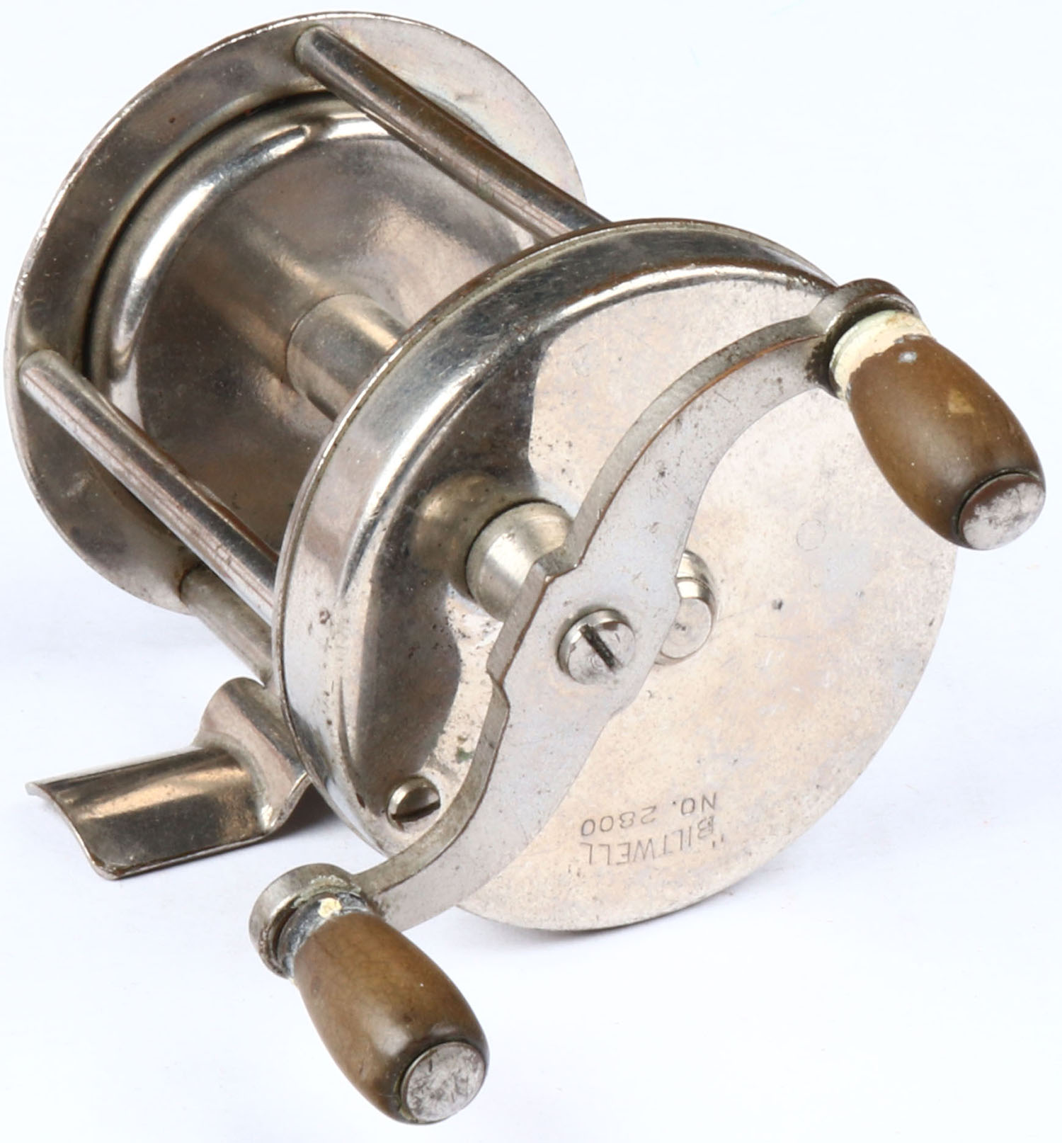 Bronson Steel Co. Biltwell, Casting reel, No. 2800, strong click, handle is bent so spins is a little rough. Grade: Very Good - Value: 2 to 20