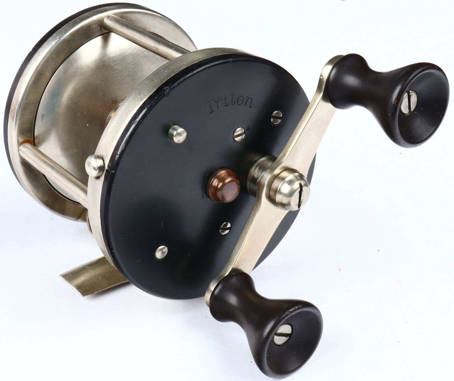 A.F. Meisselbach MFG Co. Triton, dual black wood handle, strong click, perfectly balanced & spins well. Grade: Excellent - Value: 10 to 50