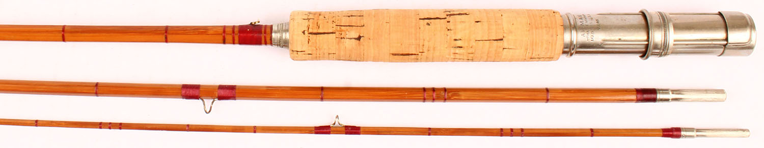 Armax (which is one of the MFG who made rods for Winchester) 3pc. Split bamboo fly rod No. 7246, 9', has one tip & one mid section, all sections are the correct length, all orginal wrapping, cork handle is excellent, well marked on metal, highly collectible. Grade: Excellent + - Value: 40 to 200
