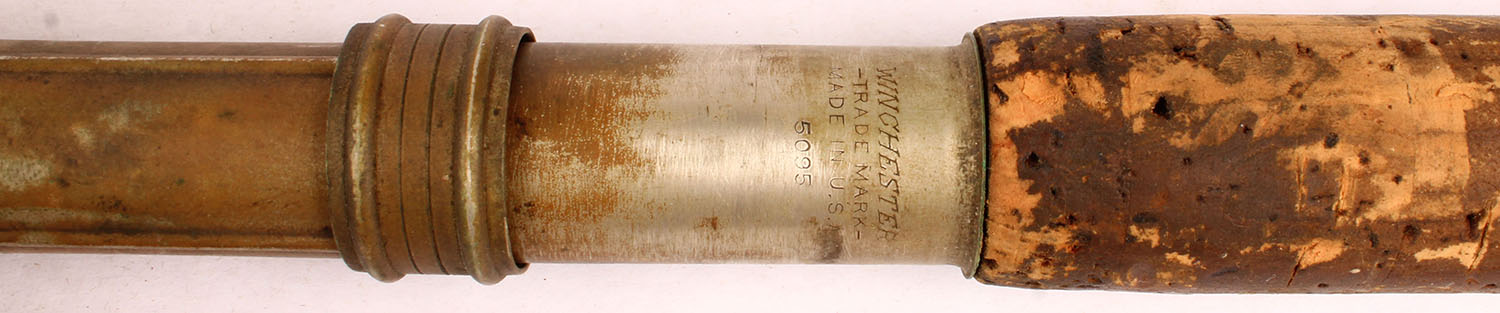 Winchester 1pc. Telescoping Steel fly/casting rod No. 5095, 9', all orginal and correct length, cork handle shows use, well marked on reel seat. Grade: Very Good + - Value: 20 to 80
