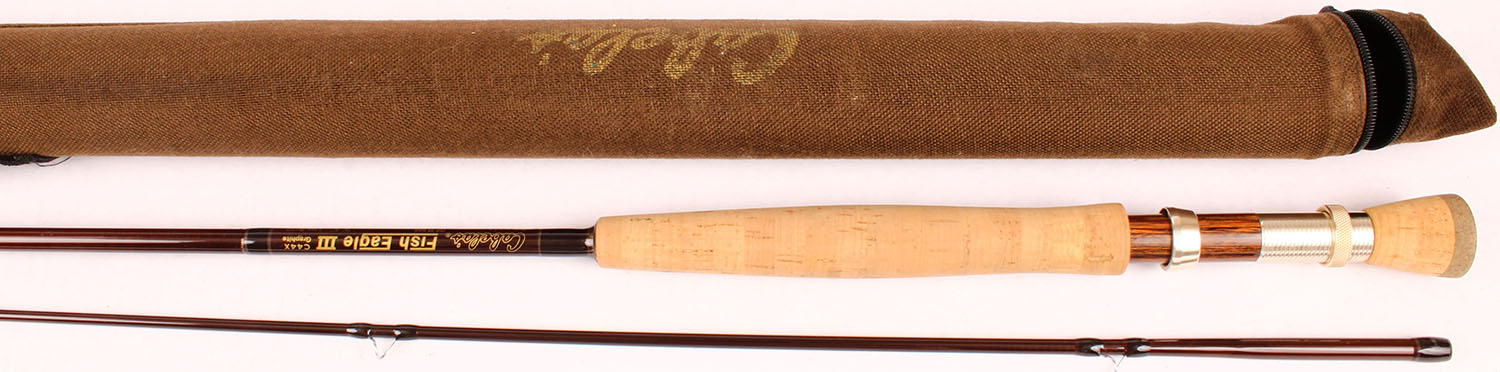 Cabela's Fish Eagle III C44X Fly Rod, Graphite, 9 1/2', Line 9-10, 2/1, cork looks unfished, has original hard tube. Grade: Excellent ++ - Value: 20 to 100