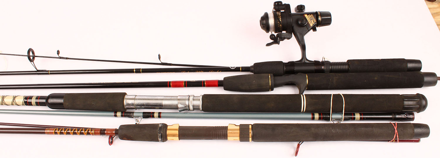 | Lot of fishing rods & one has a reel. Grade: Excellent - Val...