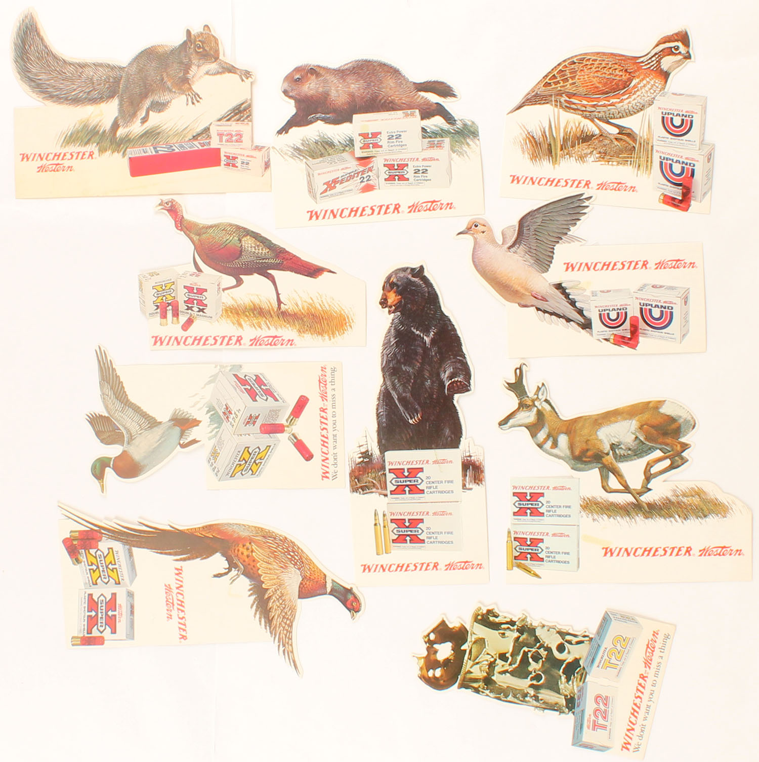 Lot of 10 Winchester-Western Wind Talkers, thin cardboard advertisements. Grade: Excellent ++ - Value: 10 to 100