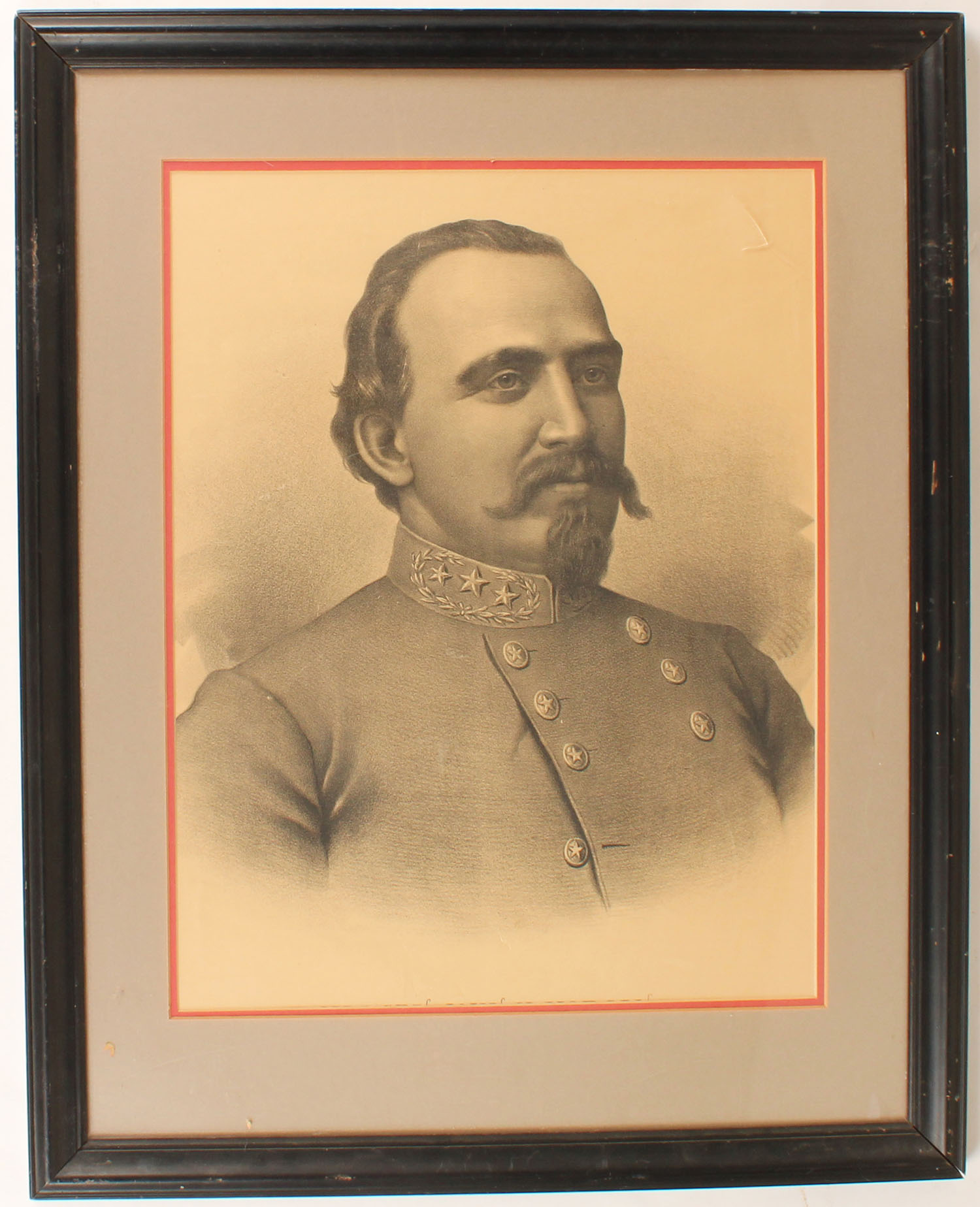 Early print of a Maj. Gen. John H. Morgan, confederate civil war solider, very detailed, 17'' x 22'', framed & matted, small crack in plexi glass. Grade: Excellent - Value: 50 to 250