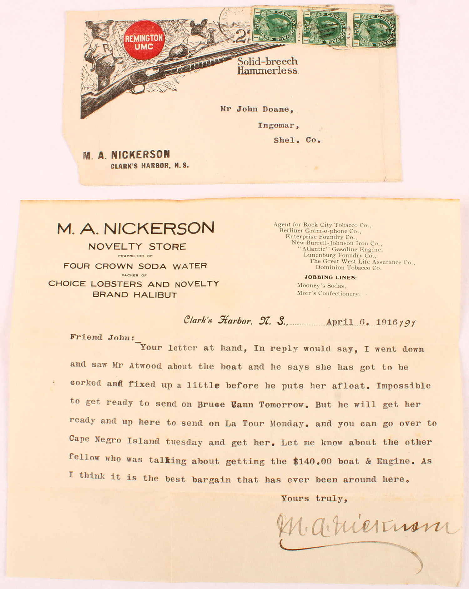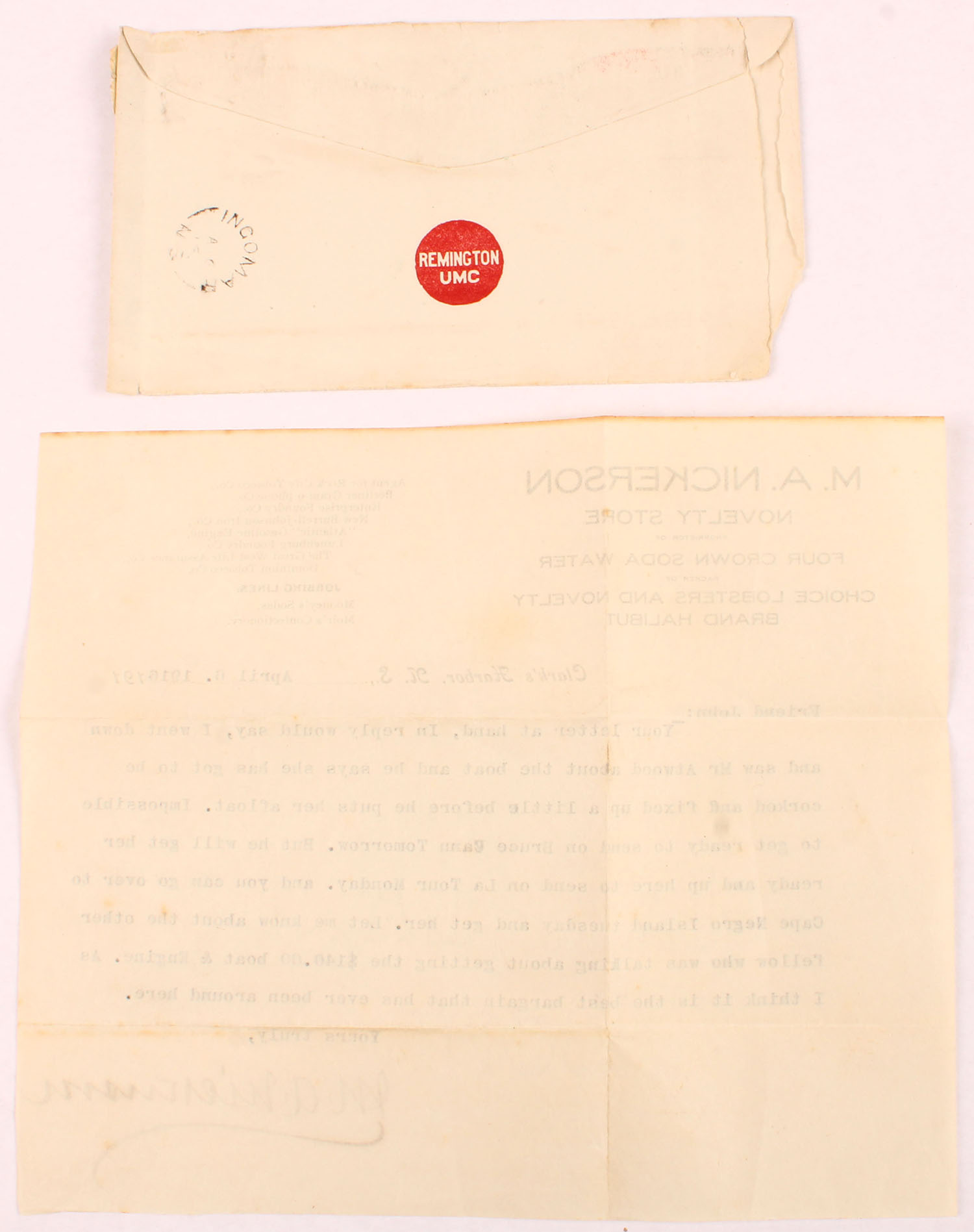 RARE Remington UMC with the two bear cubs Envelope, Solid-breech Hammerless, dated 1916, has letter inside, nice colors. Grade: Very Good ++ - Value: 50 to 200