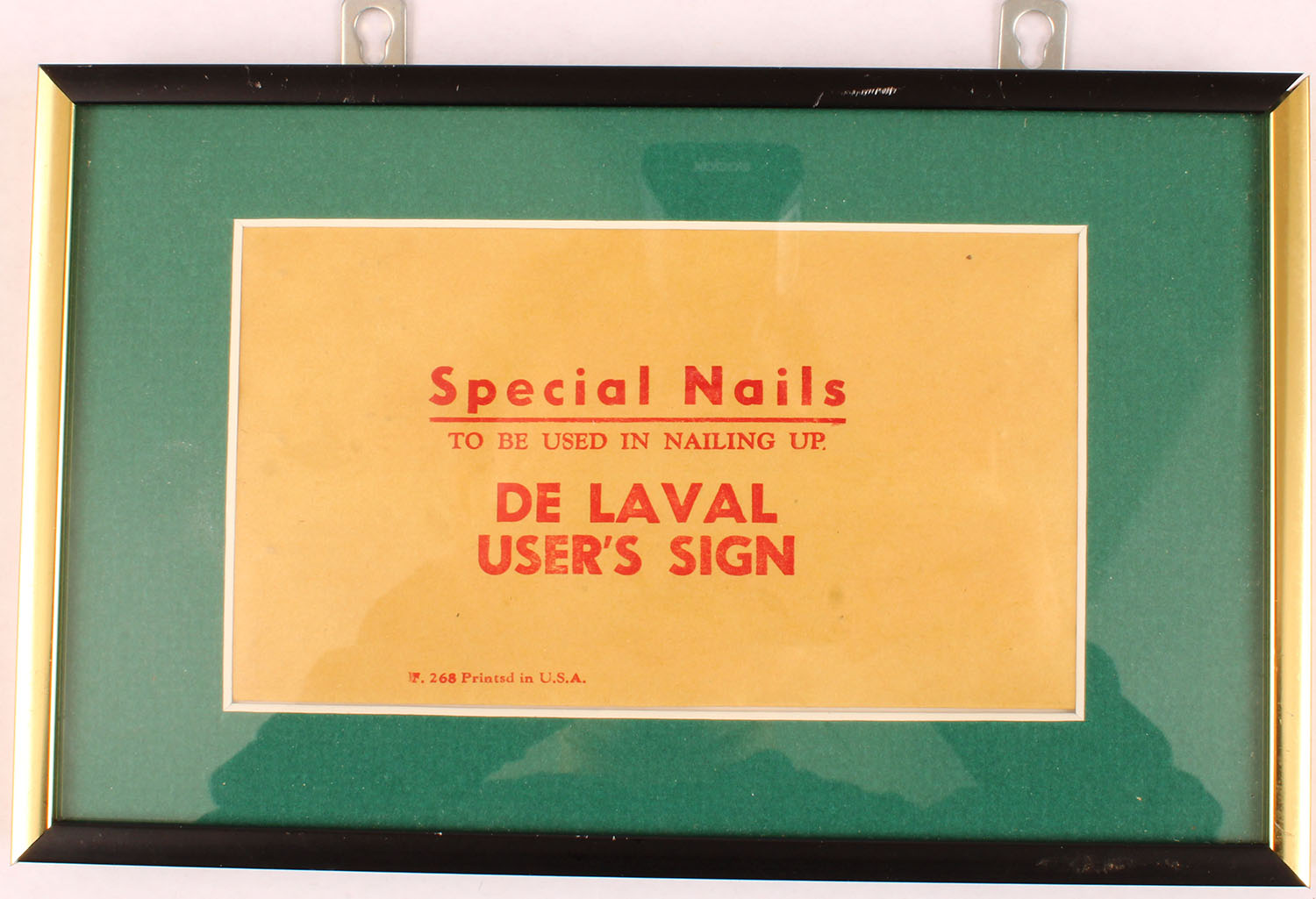 Special Nails Envelope, De Laval Users Sign, framed. Grade: Excellent - Value: 2 to 30