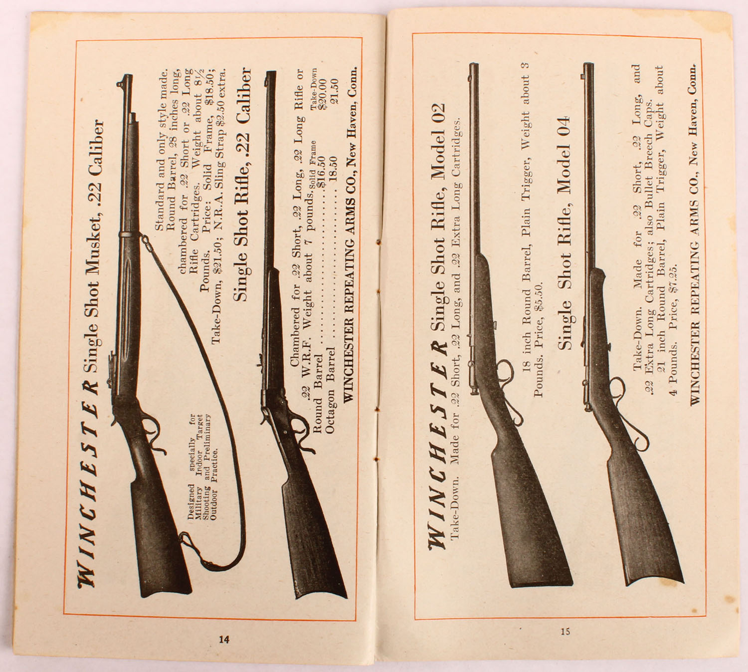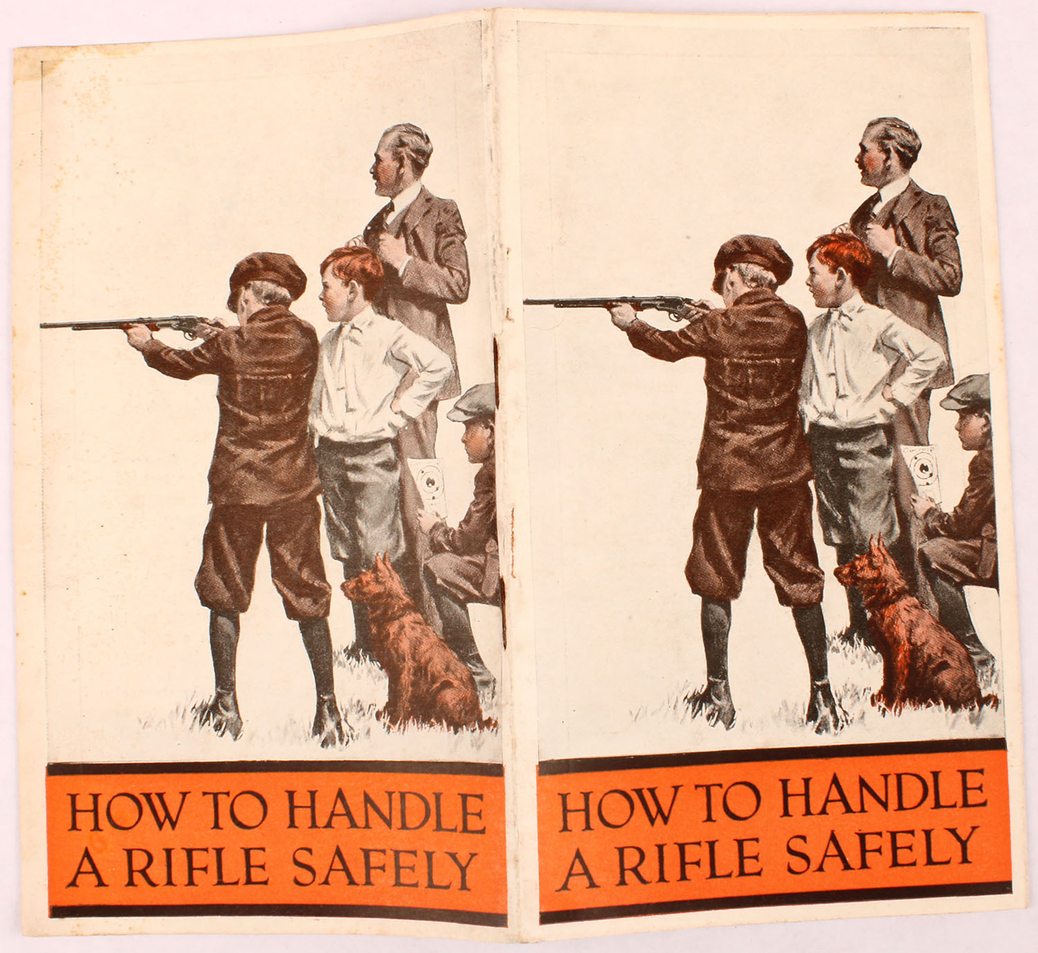Winchester Junior Rifle Crop Booklet, ''How to Handel A Rifle Safely'', 3 1/2'' x 6 1/4'', 17 pages, many .22 rifles are pictured. Grade: Excellent + - Value: 10 to 60