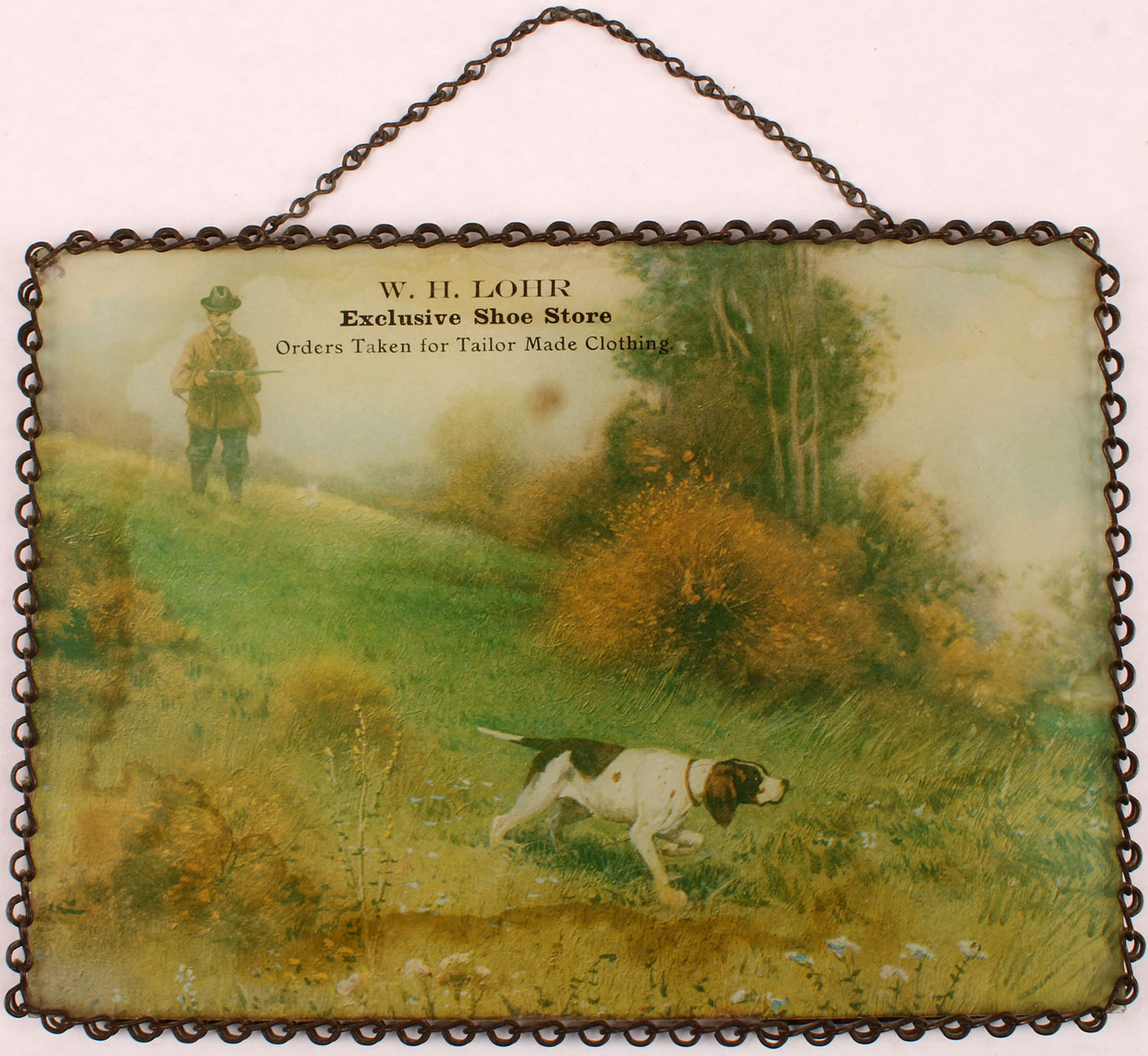 W.H. Lohr Chain Art, pictures hunters with German shorthair on point, 7'' x 5''. Grade: Excellent - Value: 40 to 125