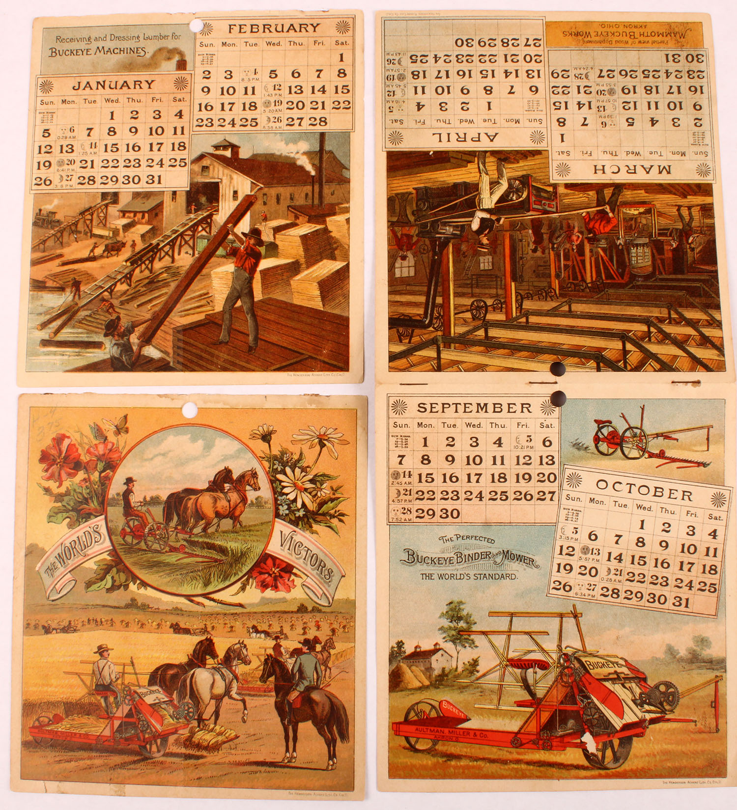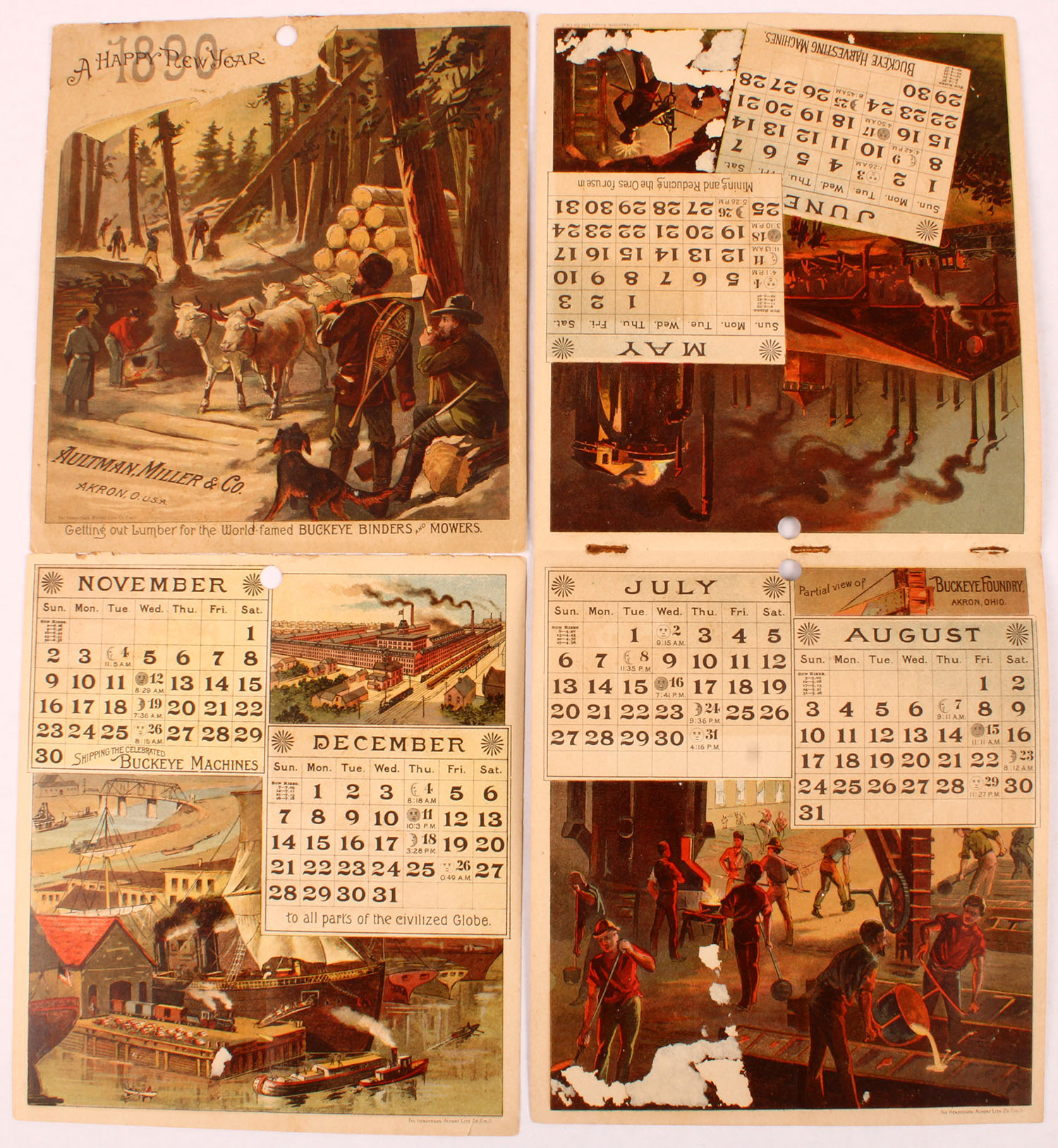 1890 Autman Miller & Co Calendar, has all 12 months, all pages have very detailed images of shipping, logging, building or farming, 6'' x 7''. Grade: Excellent - Value: 10 to 100