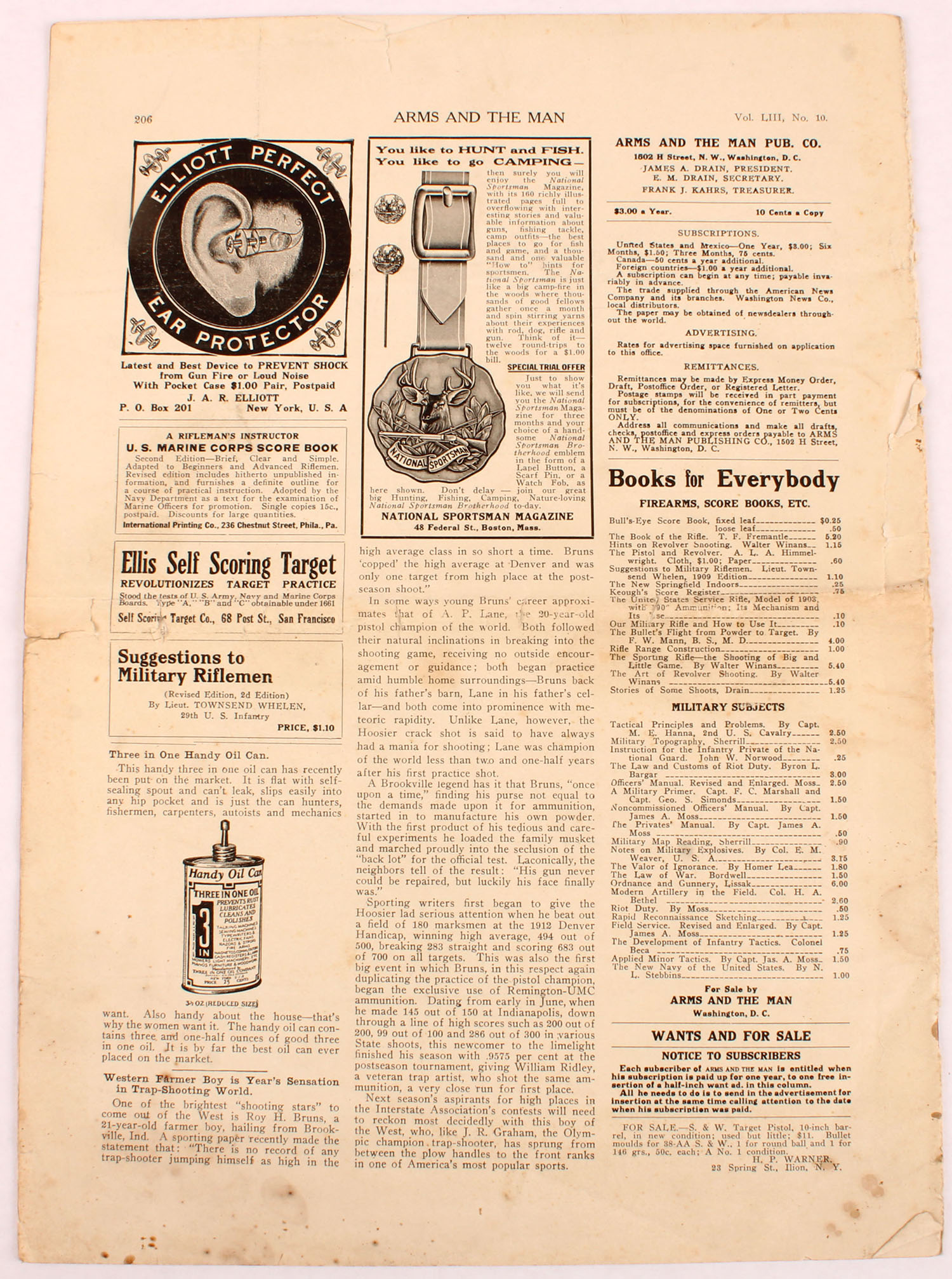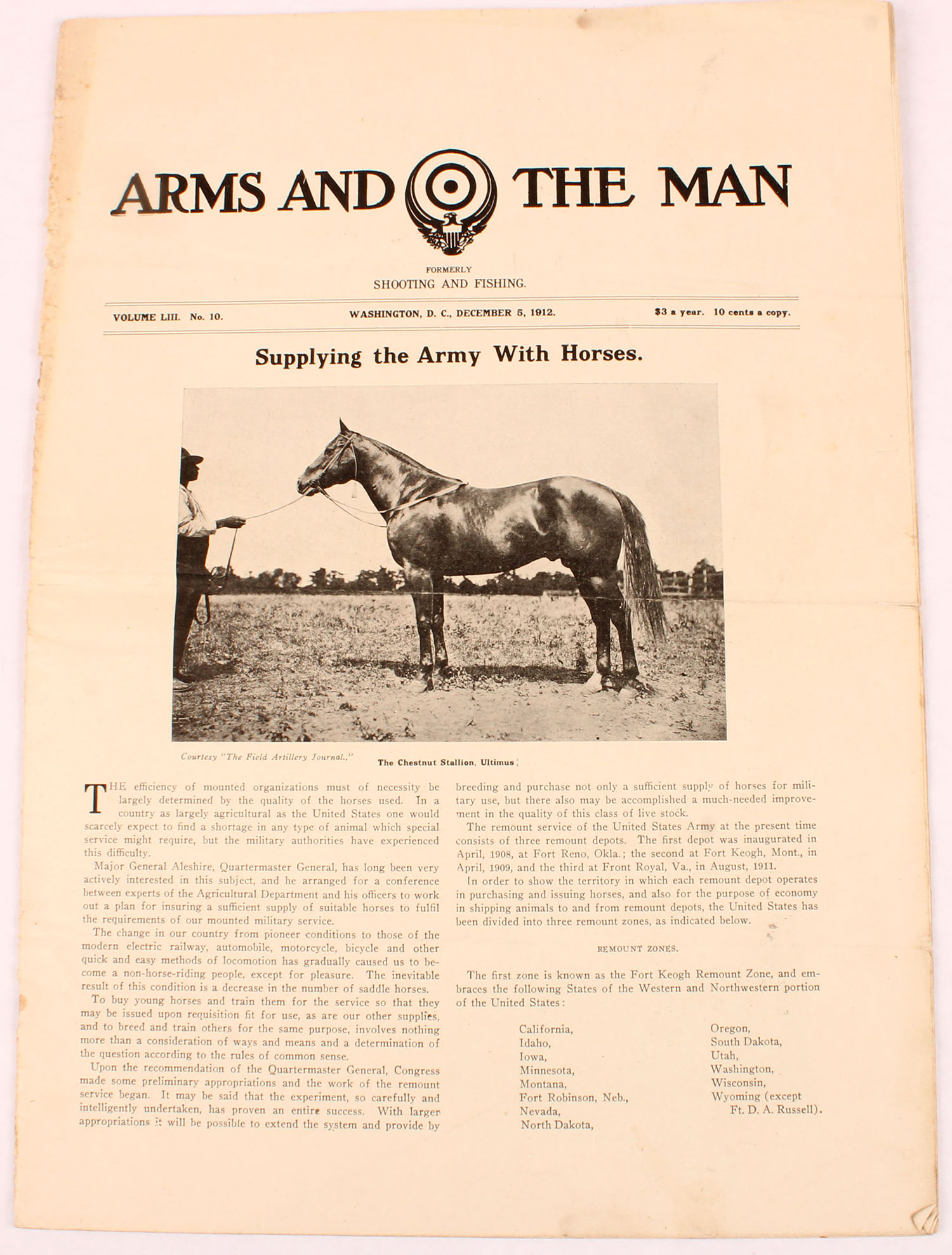 1912 Arms & The Man NRA Magazine, prior to American Rifleman, 9 3/4'' x 13 1/2'', about 10 pages. Grade: Excellent - Value: 2 to 30