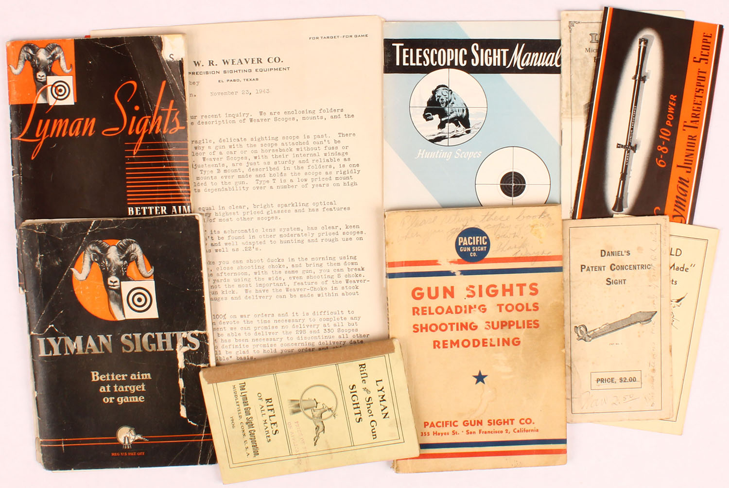 Large lot of scope, rifle, sights, catalos, letters & brochures. Grade: Excellent - Value: 2 to 50