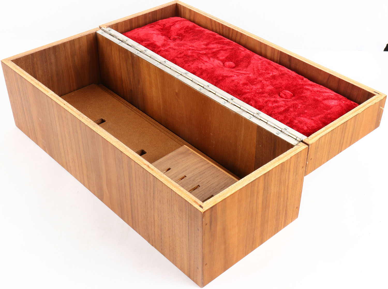 Wood display case, felt liner, with wood dividers, 19'' x 7 1/2'' x 7 1/2''. Grade: Excellent ++ - Value: 10 to 100