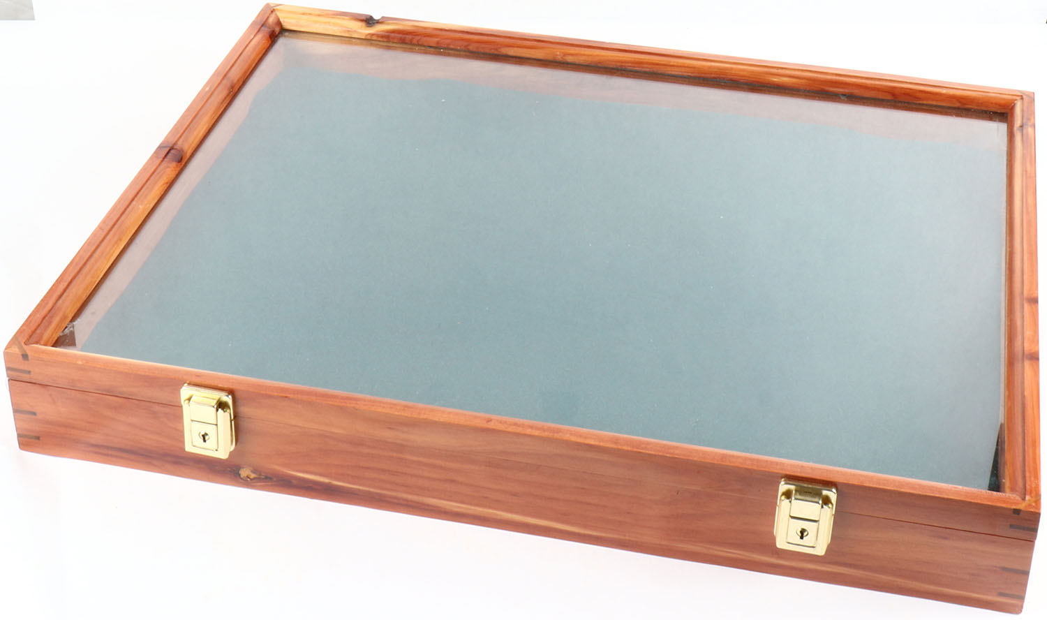 Wood display case, felt liner, 24'' x 18'' x 3 1/2''. Grade: Excellent ++ - Value: 10 to 100