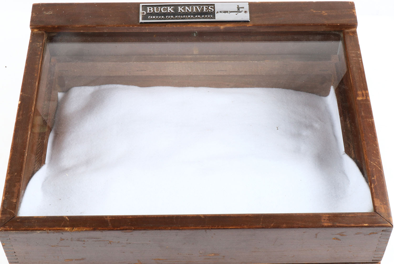 Buck knives Wood display case, 18'' x 13'' x 7''. Grade: Excellent - Value: 50 to 250