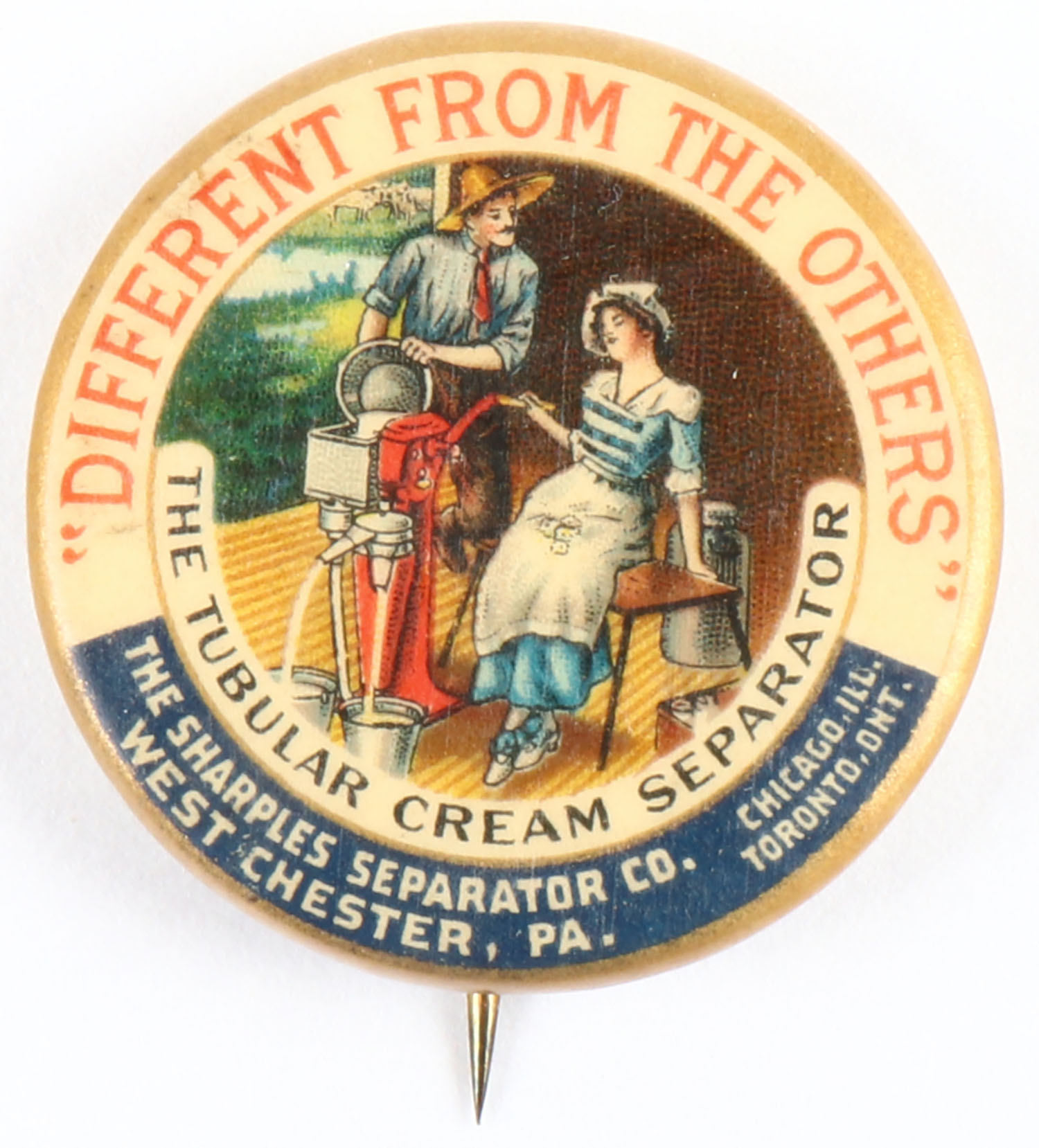 The Sharples Separator Co. pinback with wonderful color! W. & H. Co. paper back. Grade: Excellent - Value: 6 to 60