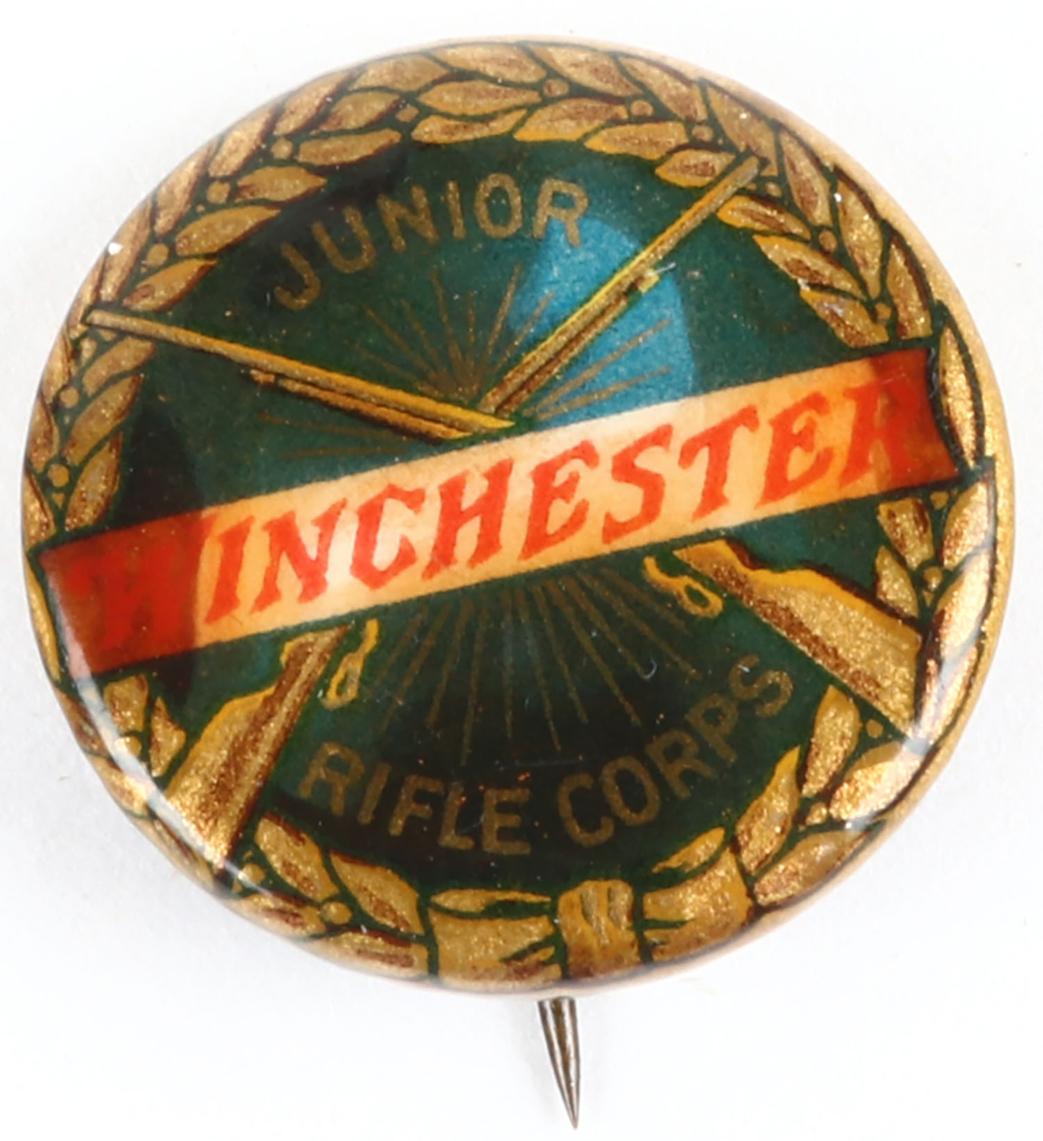 Winchester Pinback Junior Rifle Corps, pinback has age soiling, no paperback . Grade: Very Good - Value: 2 to 20