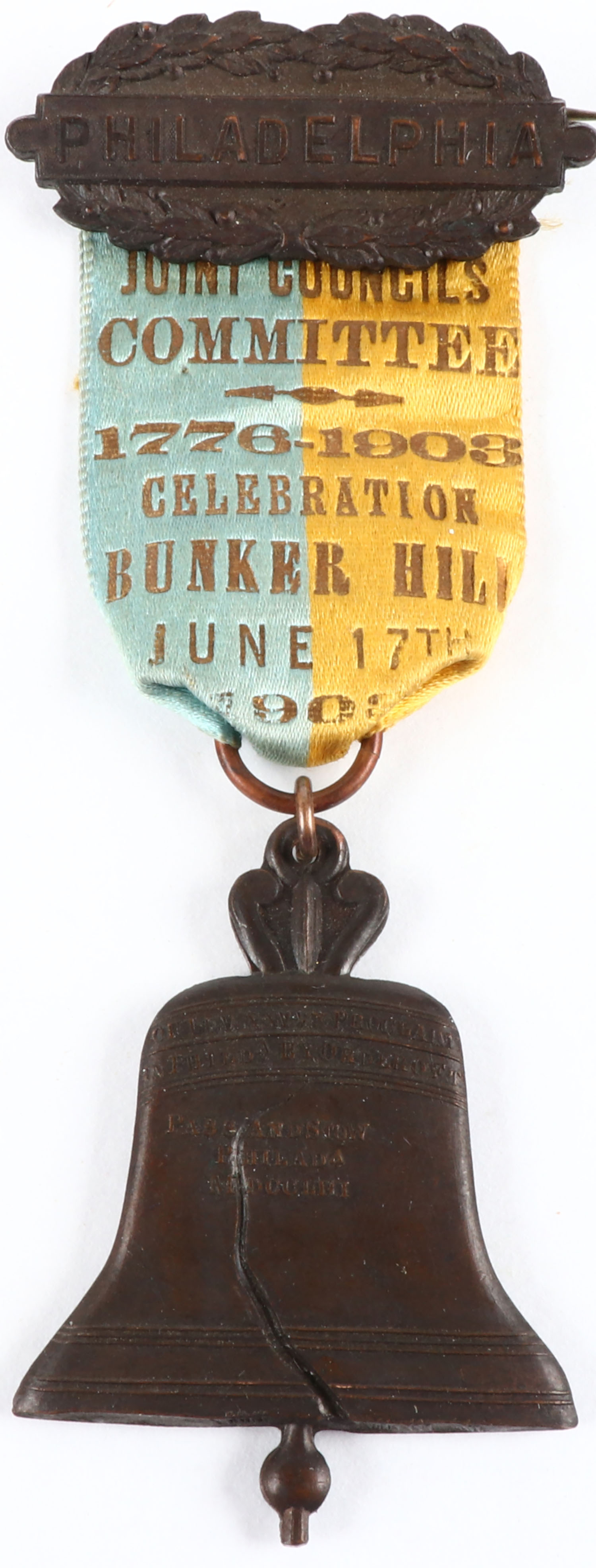 Joint Council Committee Medal, Philadelphia, 1776-1903, Celebration Bunker Hill 1908?, some age soiling all still solid. Grade: Excellent - Value: 20 to 100