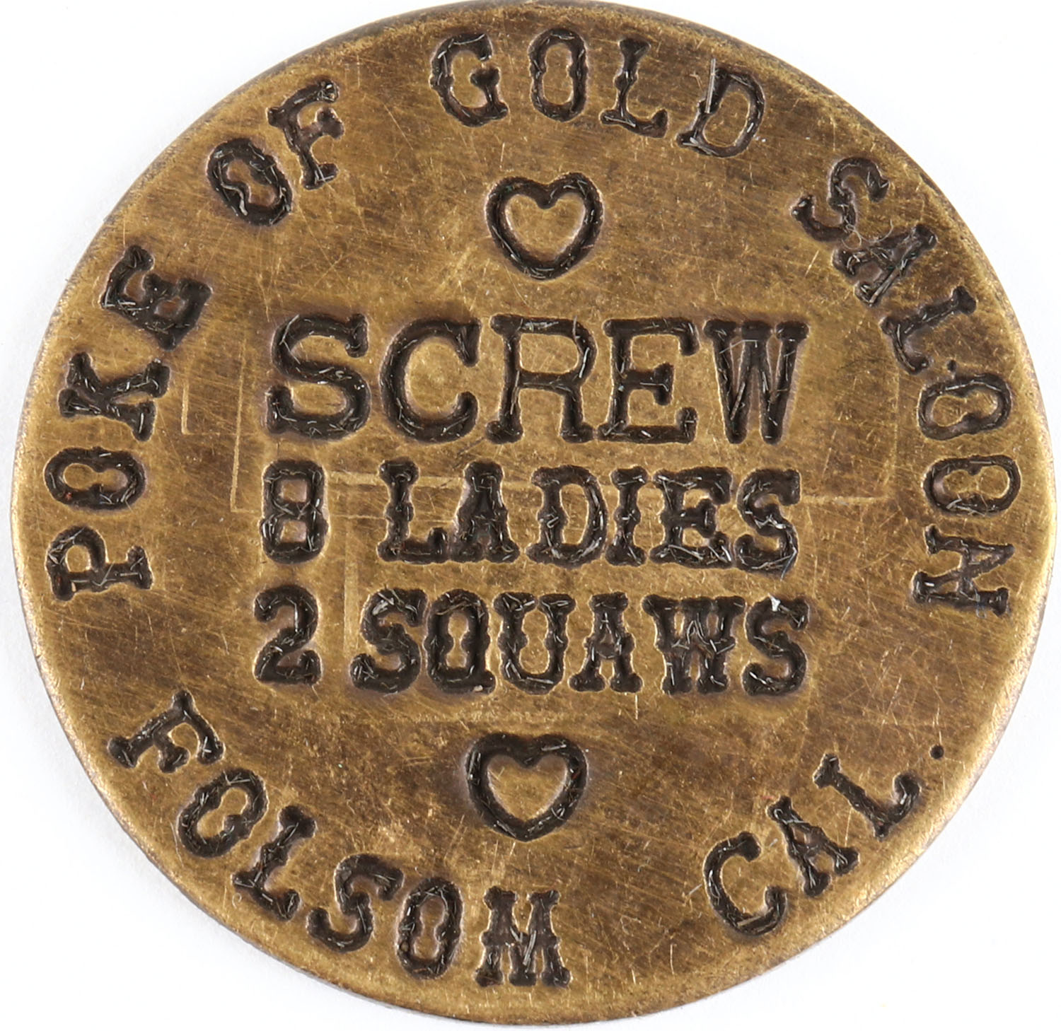 Double sided Brothel Token, Folsom, Cal., 1 1/2'' diameter. Grade: Excellent - Value: 10 to 40