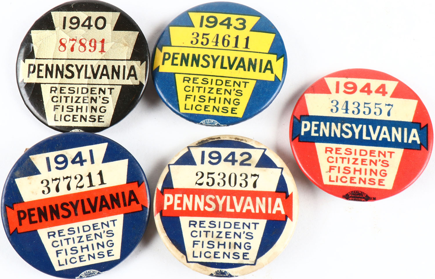 Lot of 5 Pennsylvania fishing licenses. Grade: Excellent - Value: 10 to 100