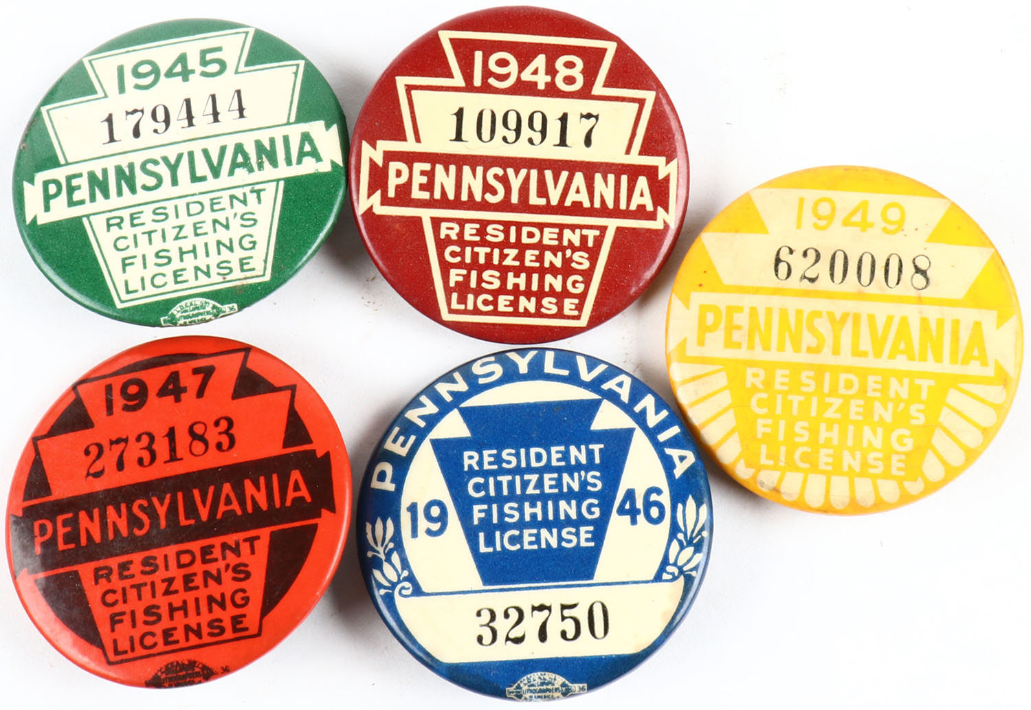 Lot of 5 Pennsylvania fishing licenses. Grade: Excellent - Value: 10 to 100