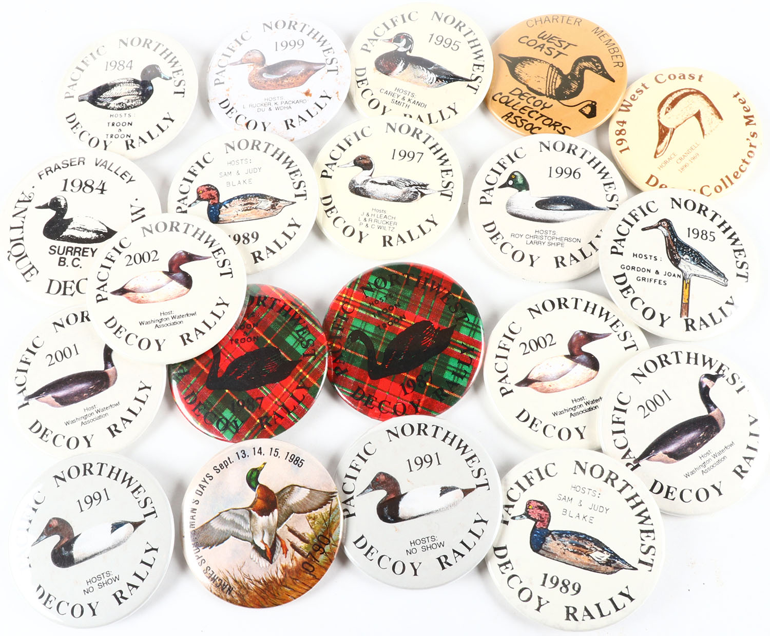 Large lot of decoy collectors pinbacks. Grade: Excellent ++ - Value: 4 to 40