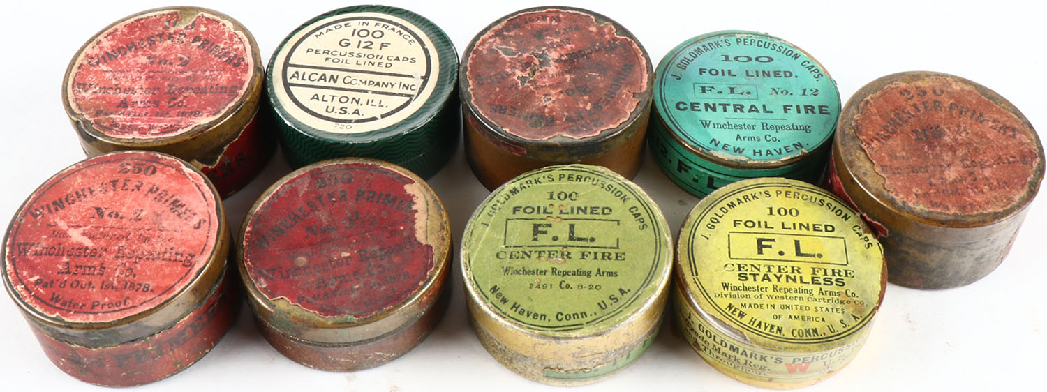 Large lot of primers and percussion caps, all partial. Grade: Excellent - Value: 6 to 60
