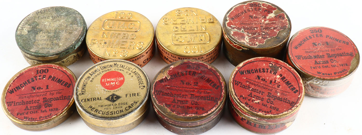 Large lot of primers and percussion caps, all partial. Grade: Excellent - Value: 10 to 100