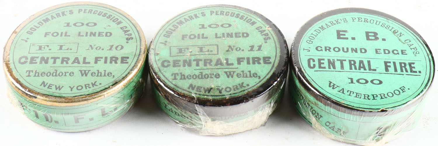 Lot of 3 J. Goldmark's Percussion caps. All full and Sealed. Grade: Excellent - Value: 6 to 60