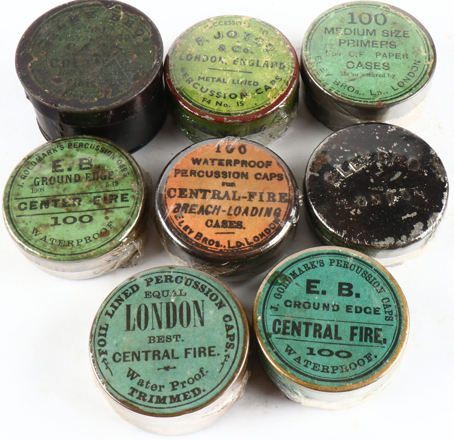 Lot of 9 percussion caps, all Empty . Grade: Very Good - Value: 10 to 100