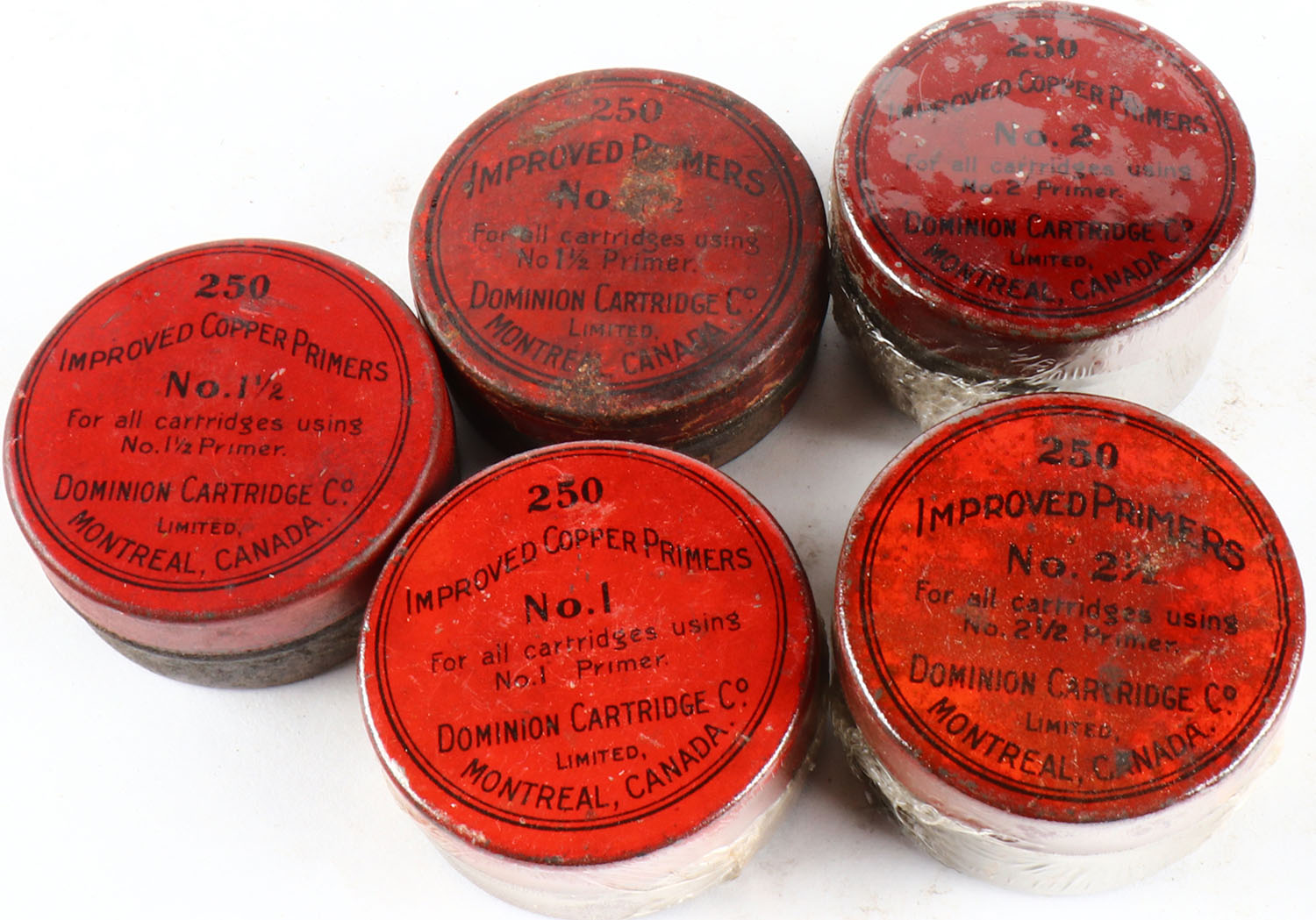Lot of 5 Dominion primers, all partial. Grade: Very Good - Value: 20 to 200