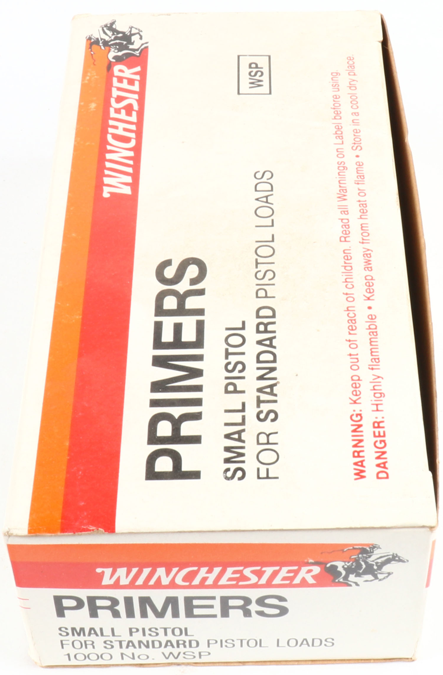 Winchester primer brick, FULL, Small Pistol primers, 1000 in the brick, all bright and clean. Grade: Excellent ++ - Value: 50 to 200