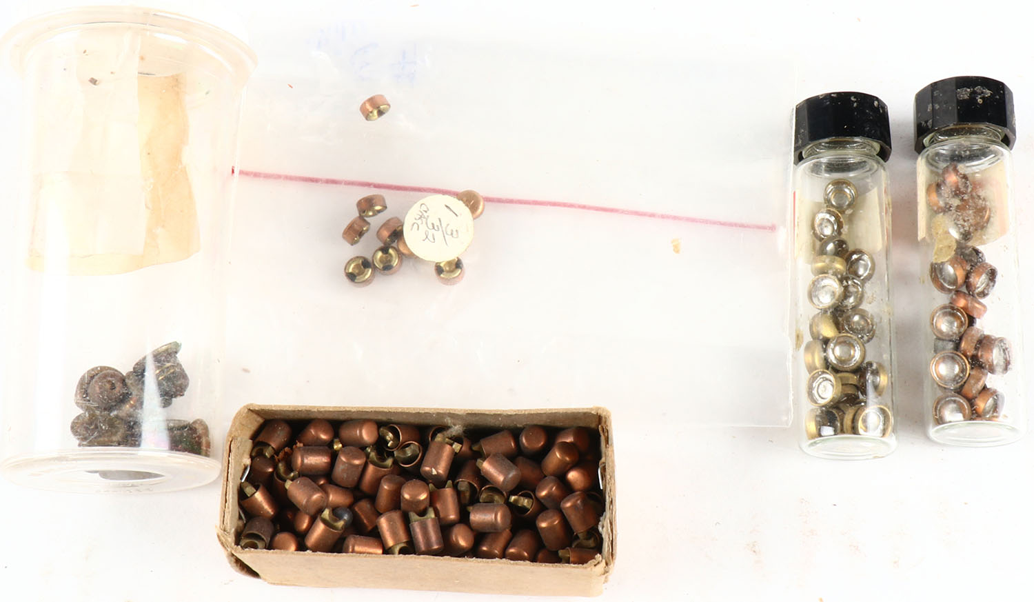 Lot of various primers, marked individually in plastic containers. Grade: Very Good ++ - Value: 4 to 40